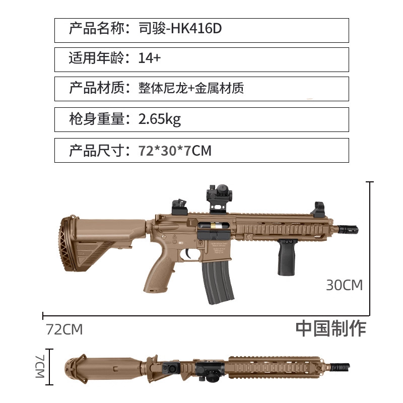 司骏HK416D金齿三代冲锋枪司俊MK18电动真人儿童CS模型玩具发射器