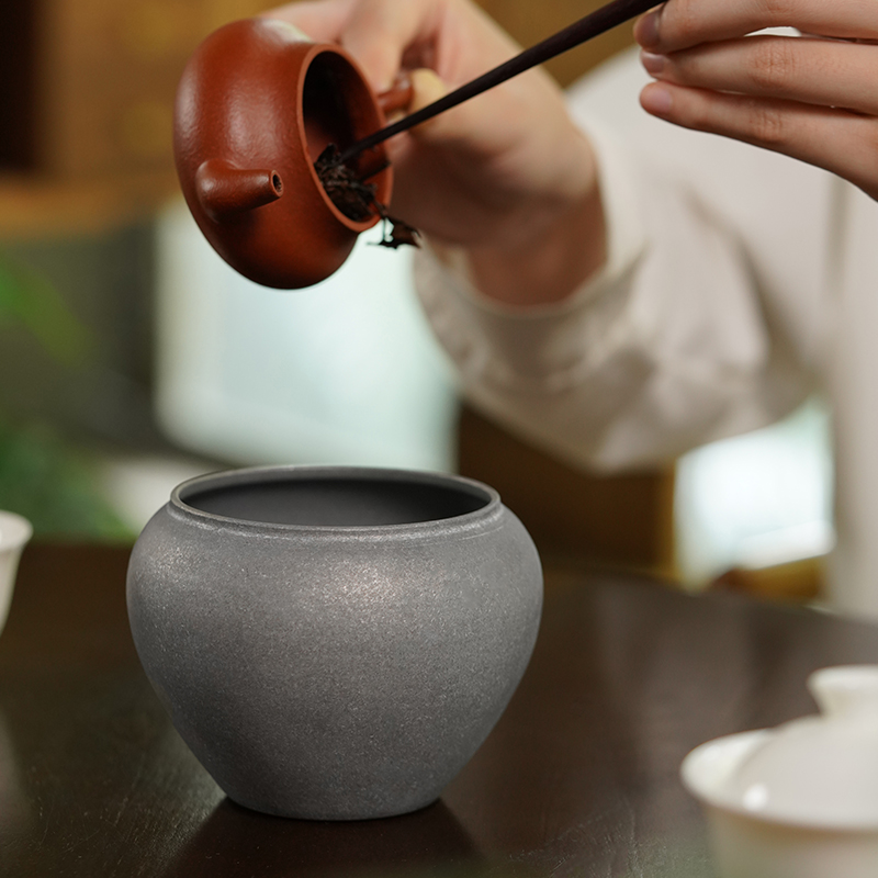 复古日式建水茶渣缸纯手工纯铝
