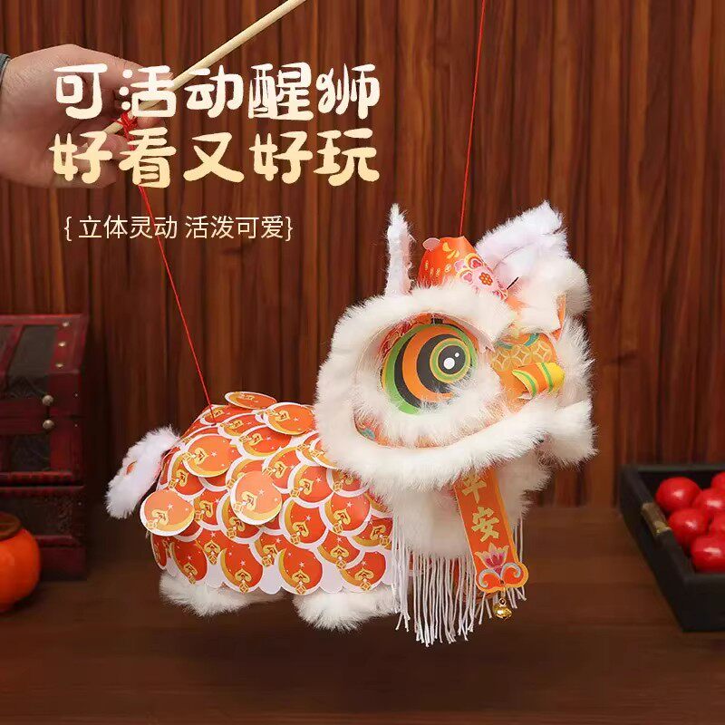 醒狮灯笼手工diy材料包新年春节元旦幼儿园古风花灯舞狮手提玩偶