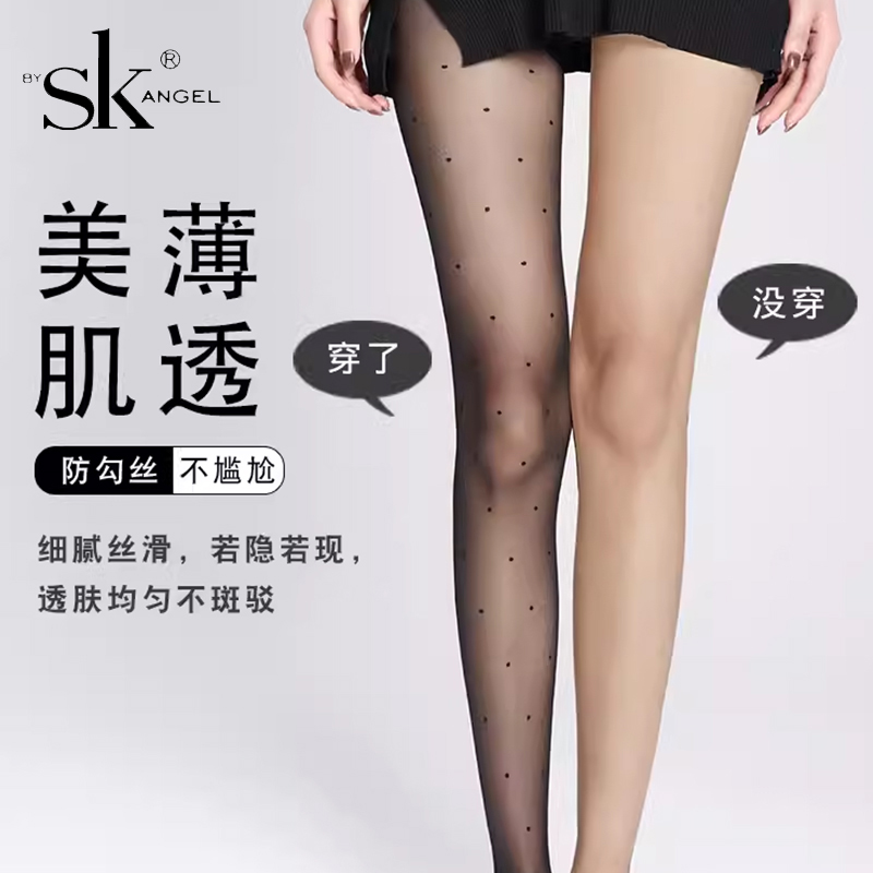 SK夏季超薄款隐形波点黑丝袜女性感防勾丝透气0D美肤圆点连裤袜女