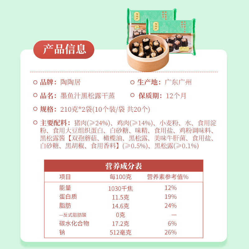 陶陶居广式点心烧卖墨鱼黑松露干蒸烧麦加热即食食品早茶早餐速食