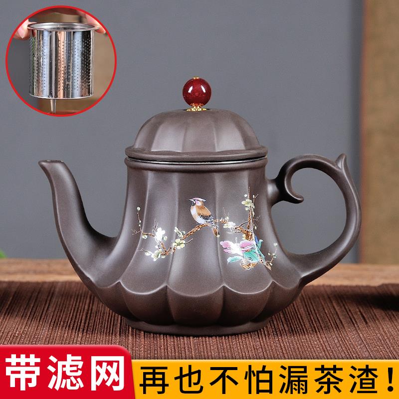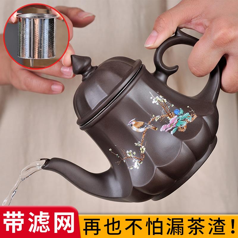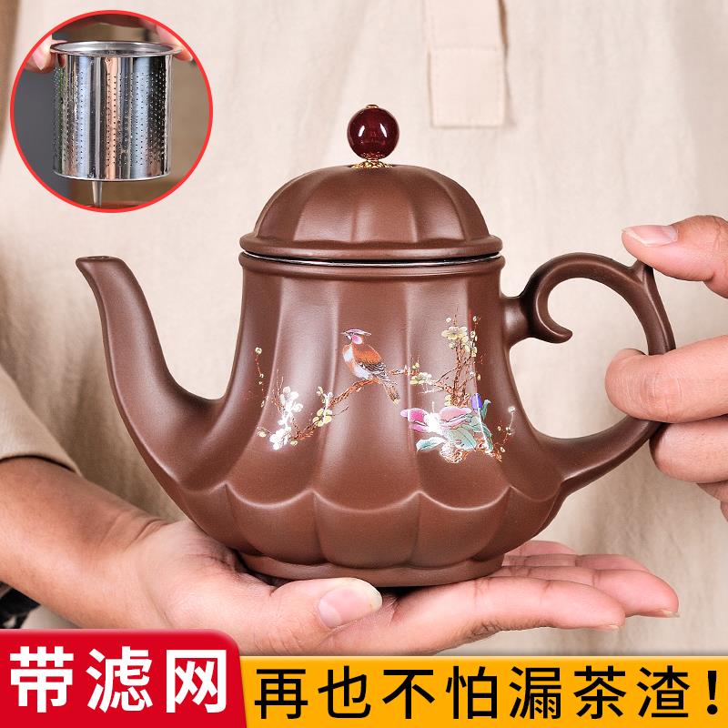 宜兴手工紫砂壶不锈钢过滤网合菱壶大号花茶壶家用泡茶器茶杯套装