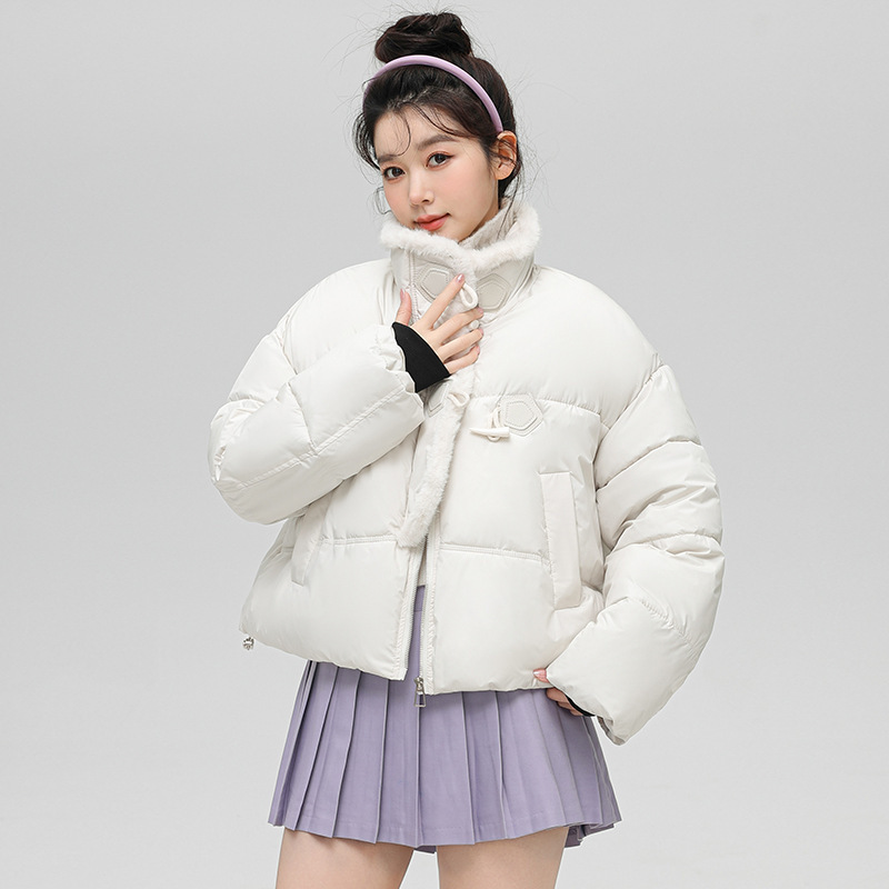 牛角扣立领羽绒棉服女春秋季大码胖mm加厚保暖短款面包服棉衣外套