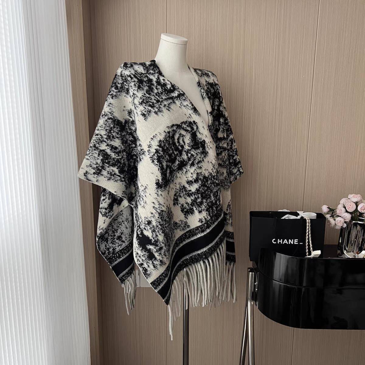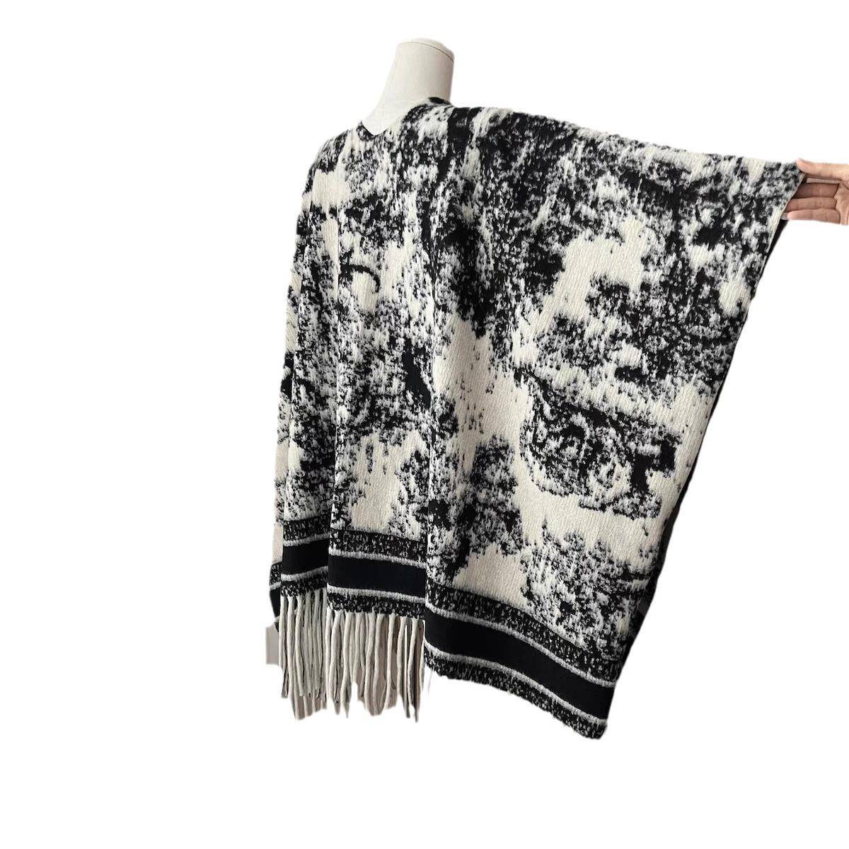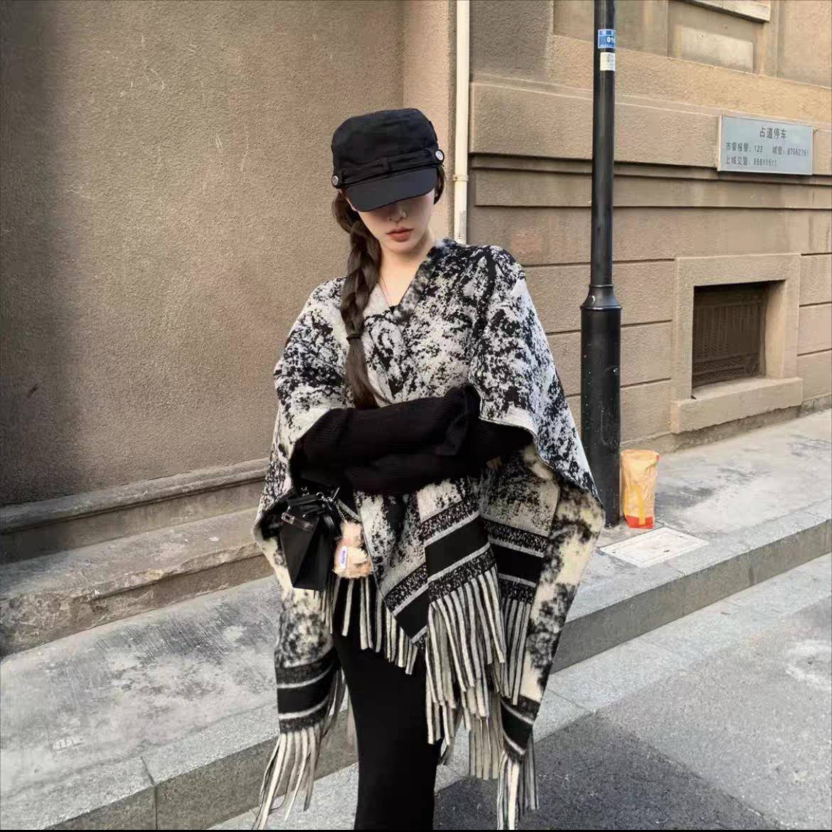 秋冬女仿水墨画披肩加厚斗篷流苏披肩外搭围巾西藏民族风披1008z