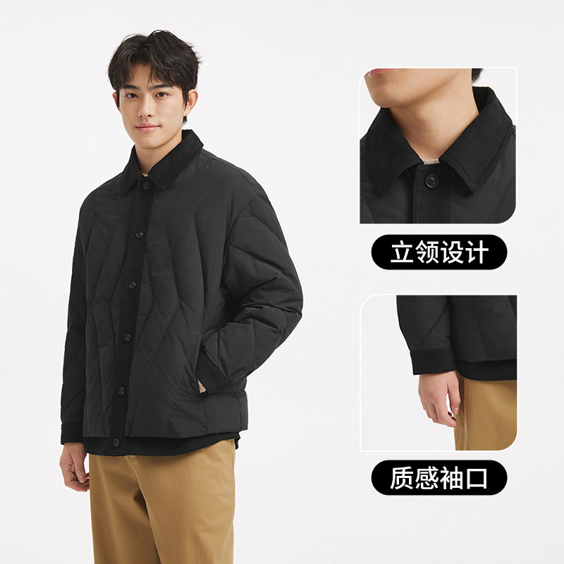热风男士羽绒服2025年冬季新款拼接时尚羽绒服轻薄羽绒保暖内搭