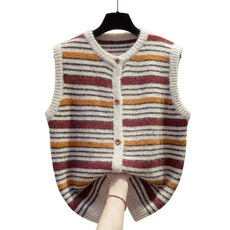 羊毛条纹开衫针织马甲女毛衣坎肩