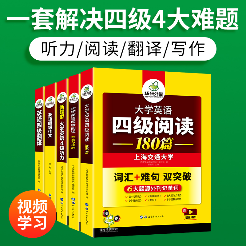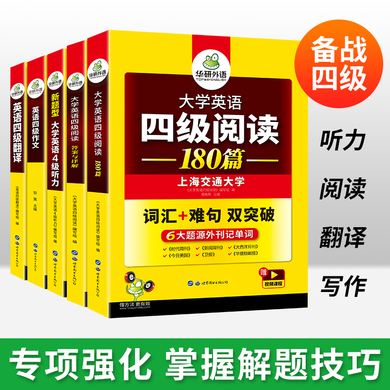 华研外语英语四级强化专项训练书资料备考2025年12月大学英语四六级阅读理解听力翻译与写作文考试真题试卷书词汇单词cet4预测淘金