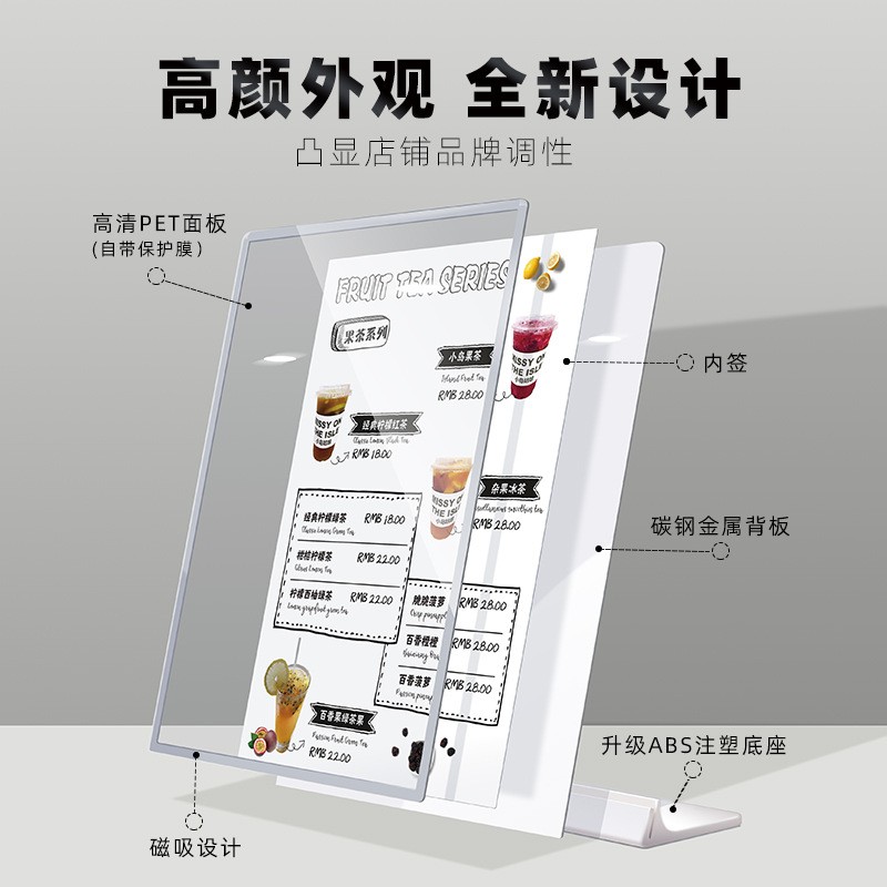 亚克力立牌 金属不锈钢台卡架价格标签架桌面立式广告牌a4展示牌