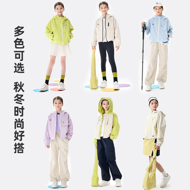 棉叔叔女童秋冬软壳外套网眼宽松保暖时尚薄绒秋季连帽上衣男童