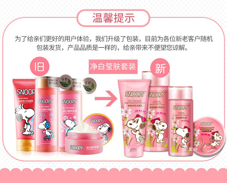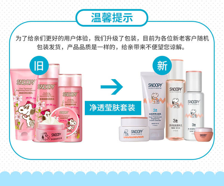 snoopy史努比净白莹肤护肤套装学生少女洁面乳水乳霜青少年化妆品