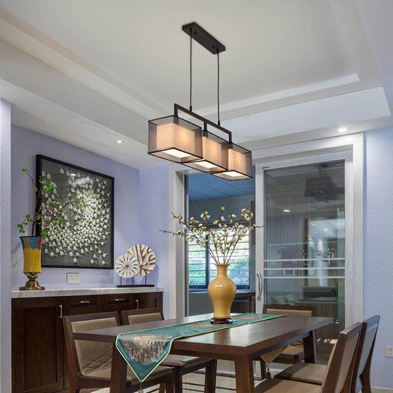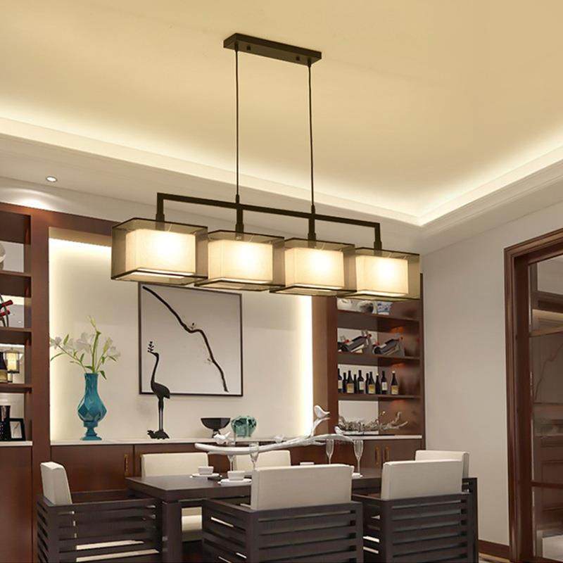 新中式餐厅吊灯长方形三头饭厅书房茶室灯具仿古茶楼台吧灯饰220V