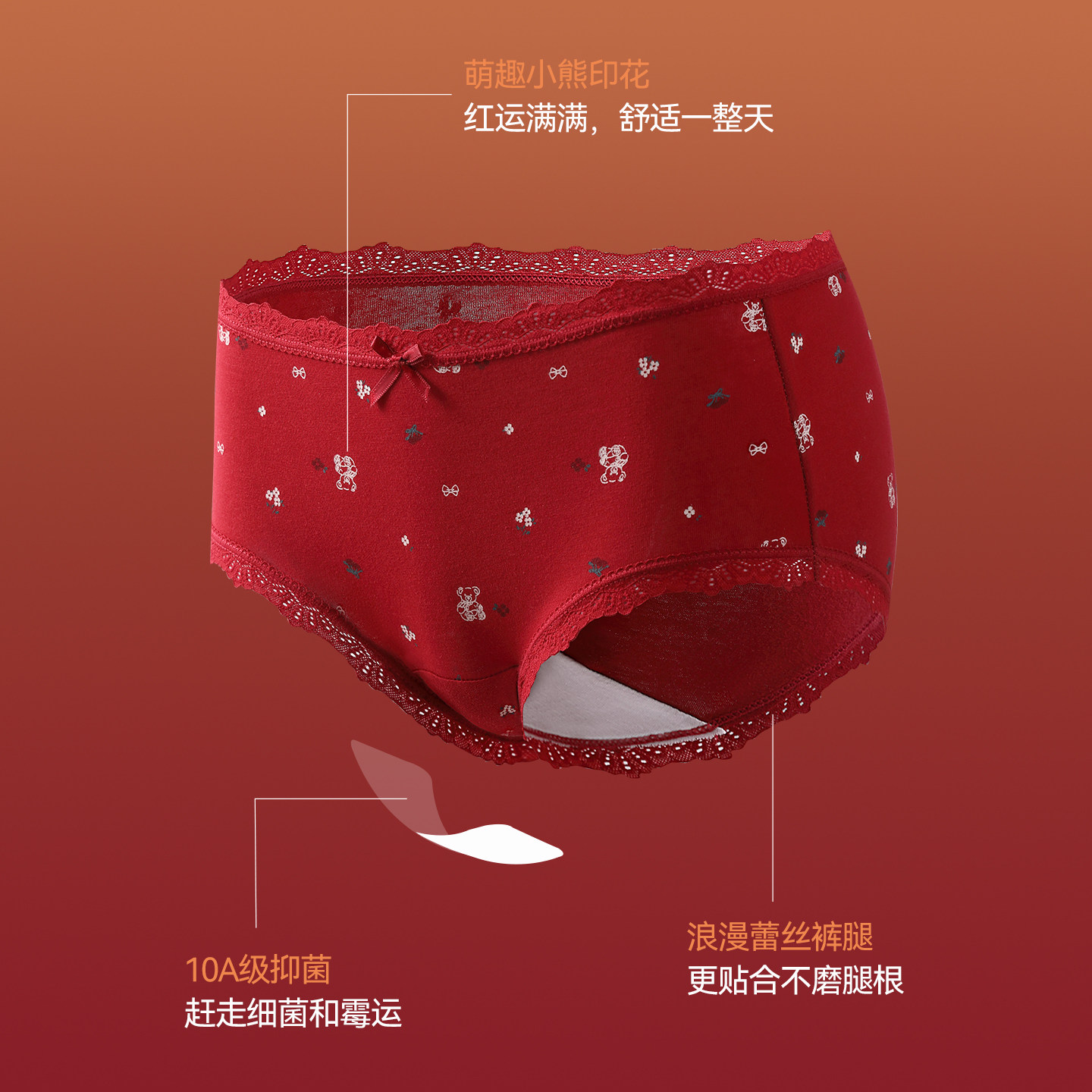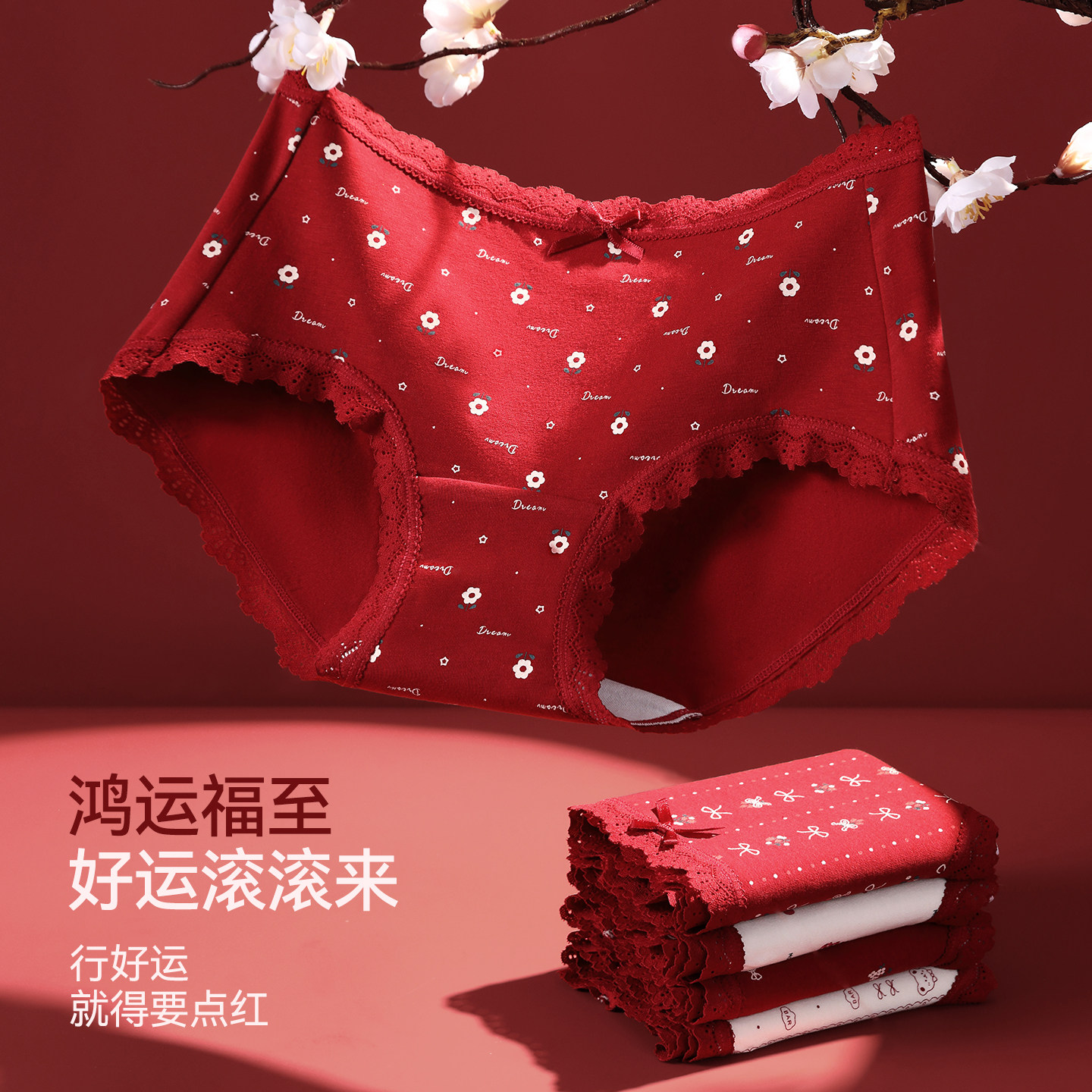 猫人本命年红色内裤女生2026新款纯棉蕾丝全棉抗菌裆女士三角短裤