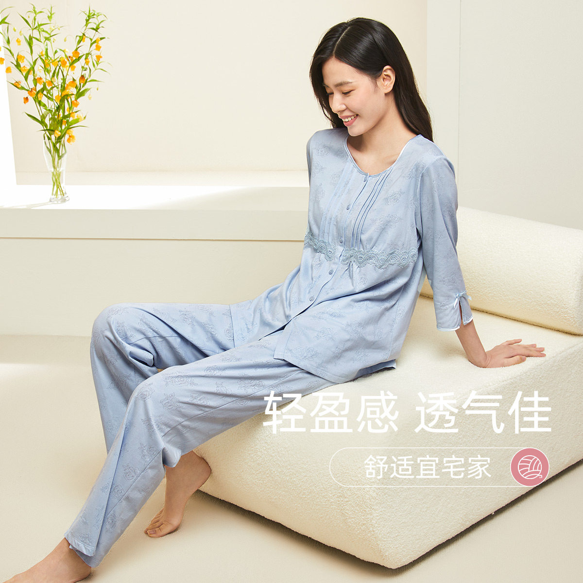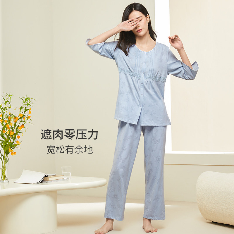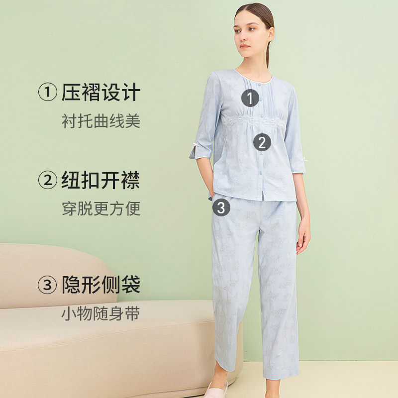 秋鹿【清仓仅剩XL码】春夏碎花七分袖睡衣女薄款棉质长裤家居服