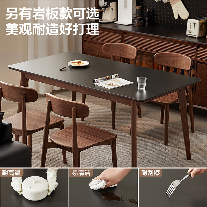 全友家居黑胡桃木实木餐桌椅组合客厅家用大板桌2025新款长方形桌
