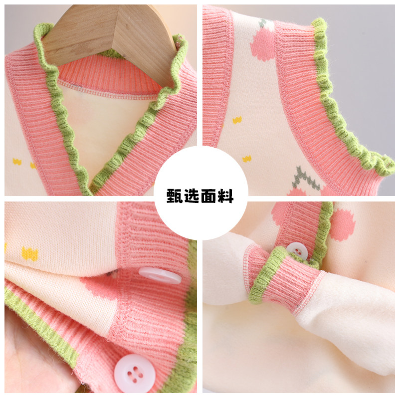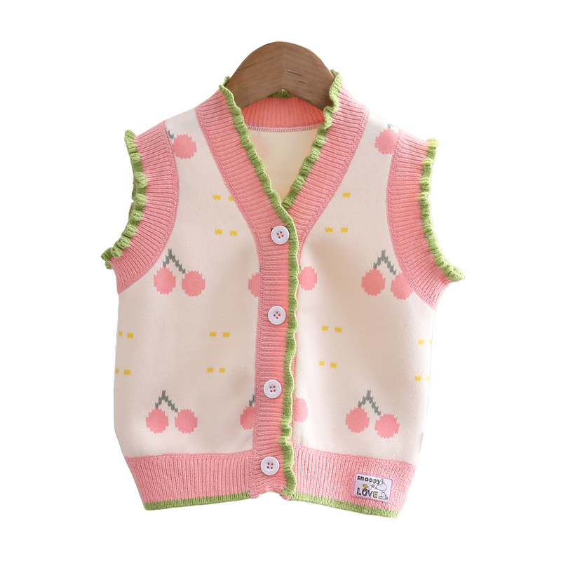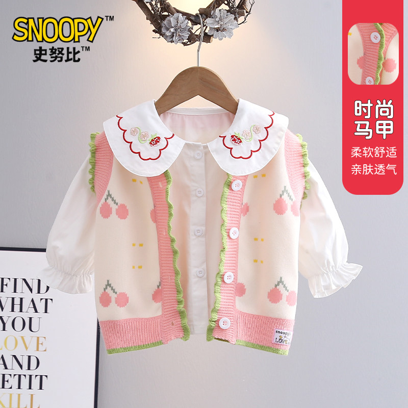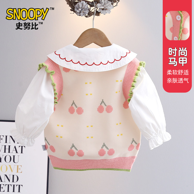 史努比女童上衣春秋新款粉色樱桃背心马甲小女孩甜美可爱穿搭外衣