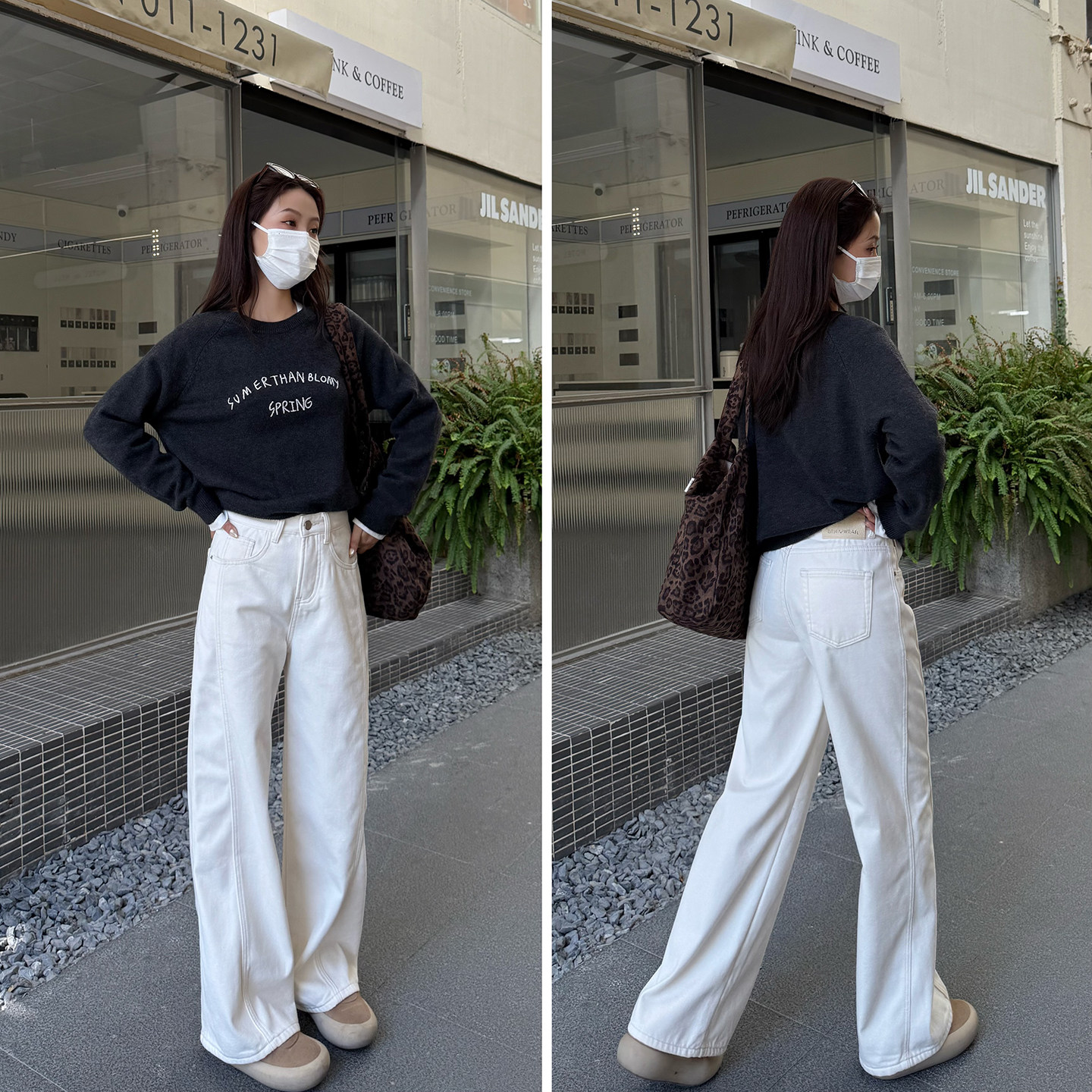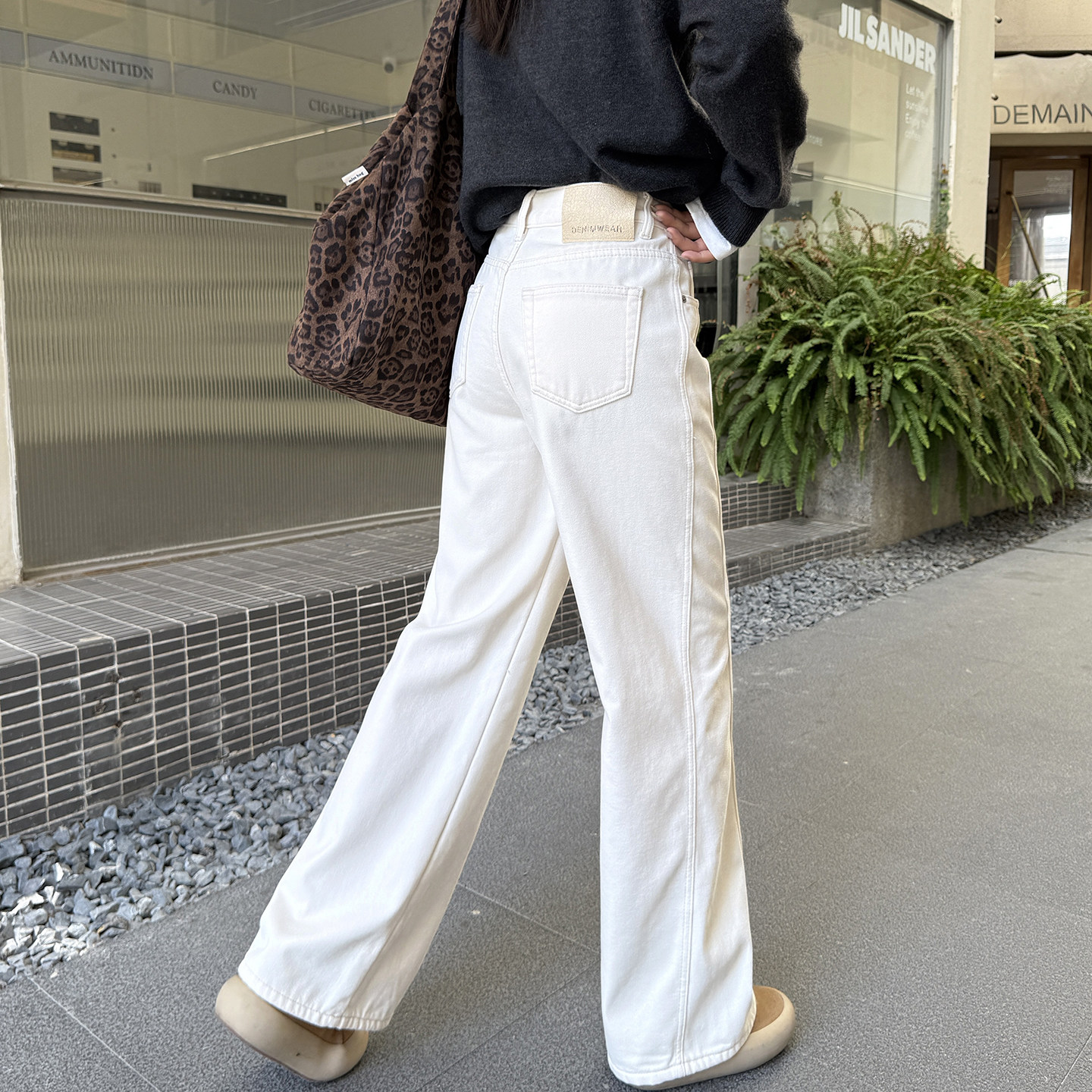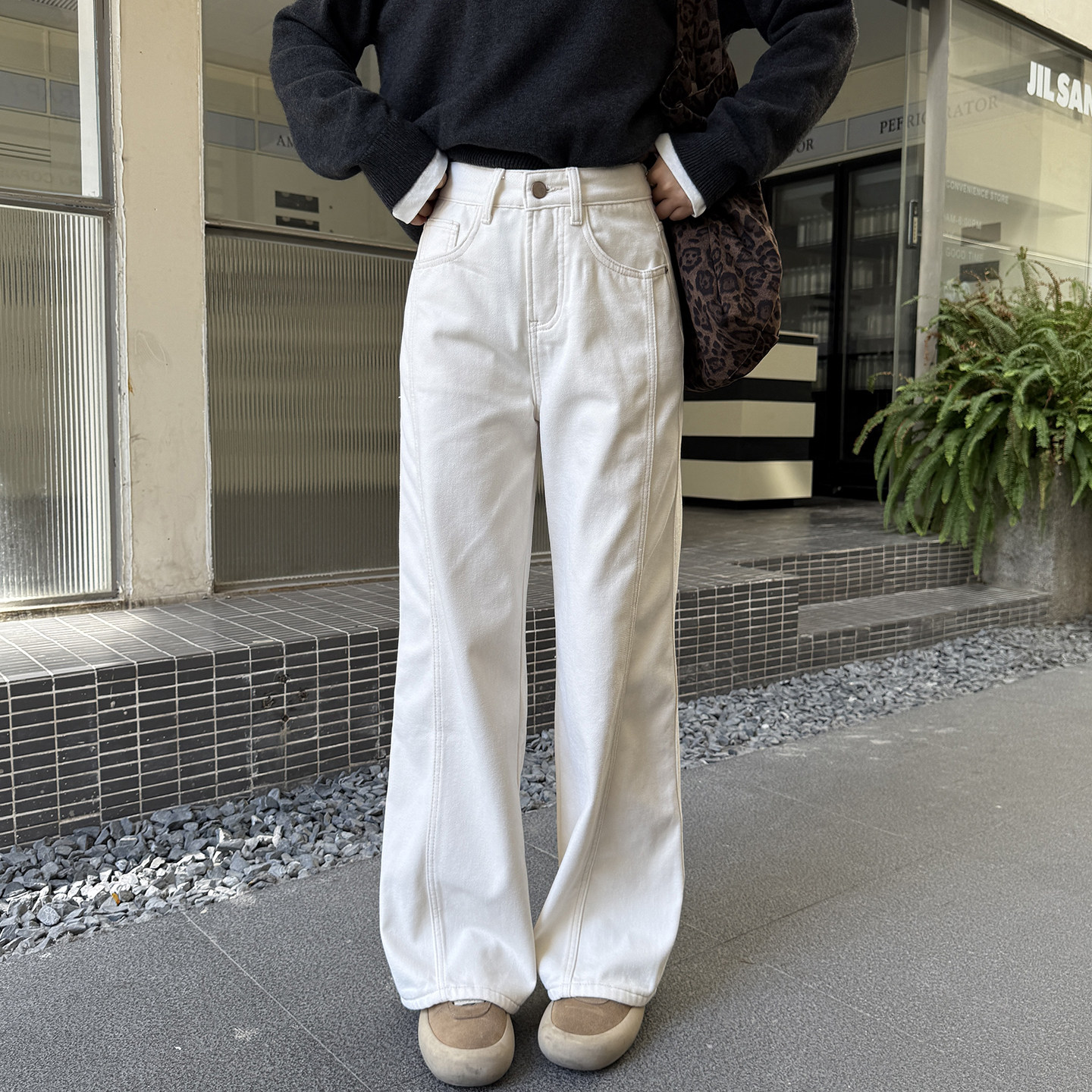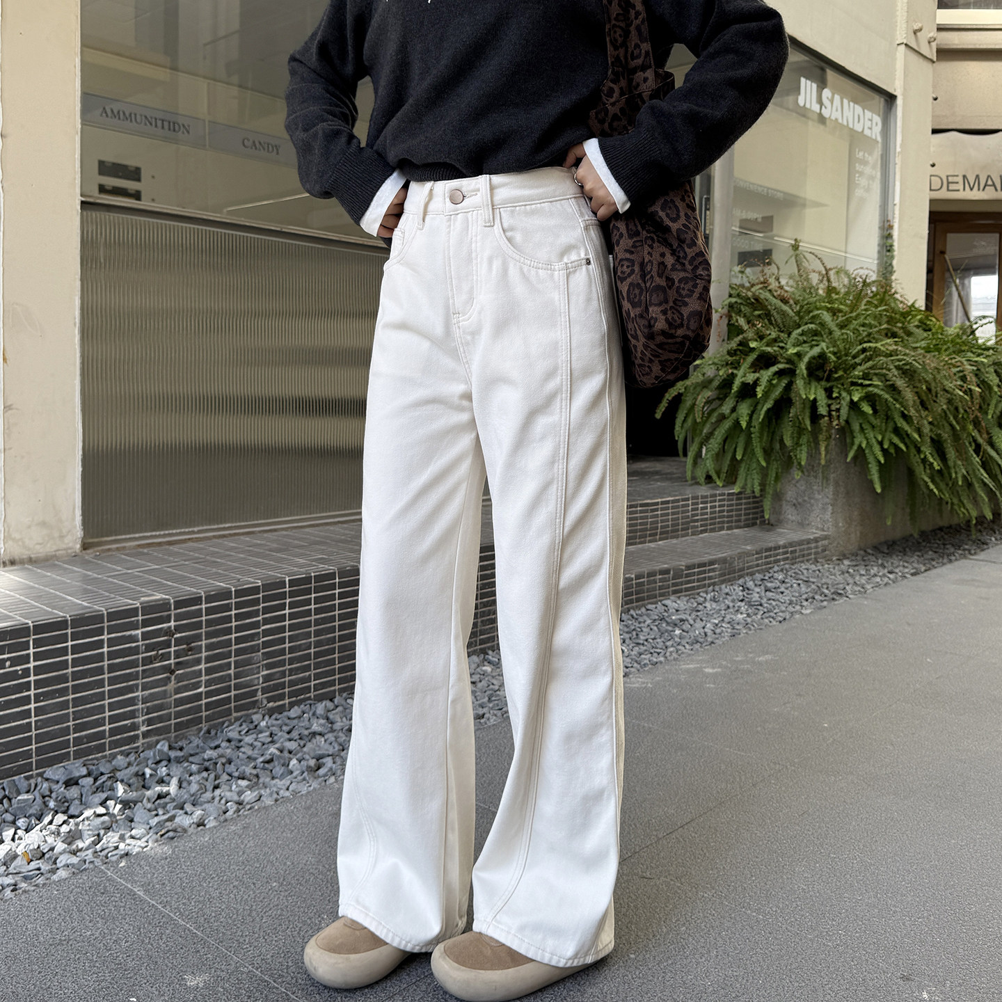 本期超爱~显瘦立体侧骨加绒阔腿牛仔裤女秋冬垂感宽松慵懒拖地裤