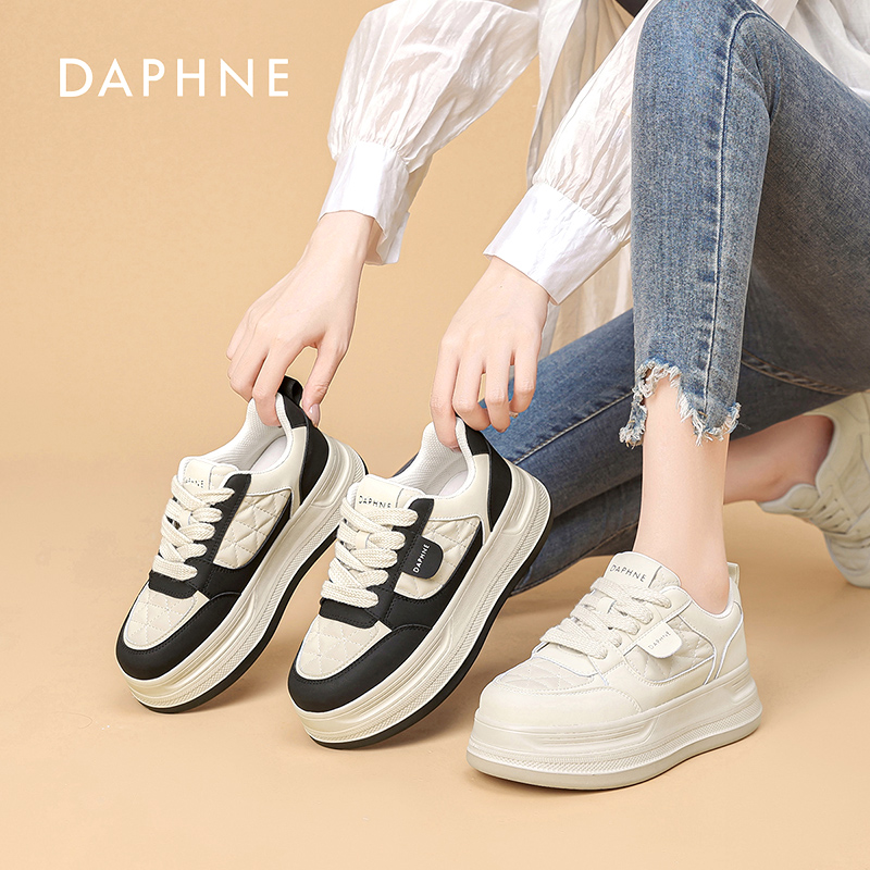 达芙妮小白鞋2025秋新款时尚休闲女鞋百搭增高复古运动透气板鞋A