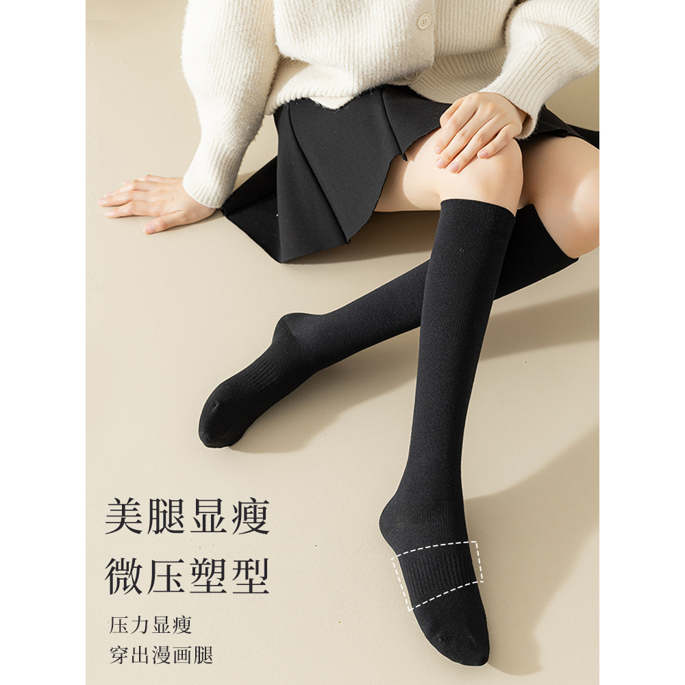 黑色袜子女中筒春秋季棉袜长筒袜过膝靴子乐福鞋压力瘦腿jk小腿袜