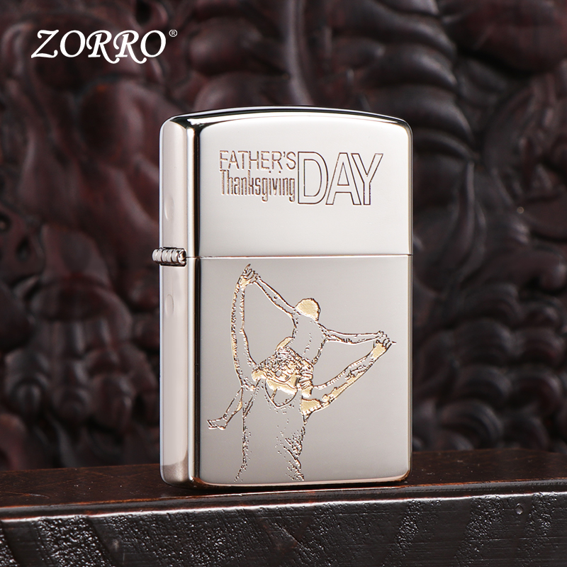 ZORRO/佐罗镀镍精雕父爱如山煤油防风打火机黄铜父亲节礼物送爸爸