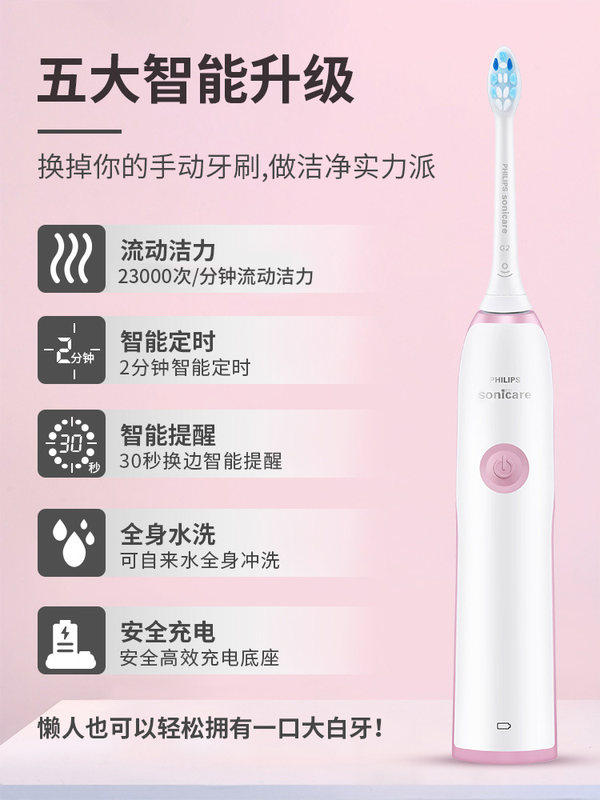 飞利浦成人儿童电动牙刷全自动男女HX3216智能定时声波震动HX3226
