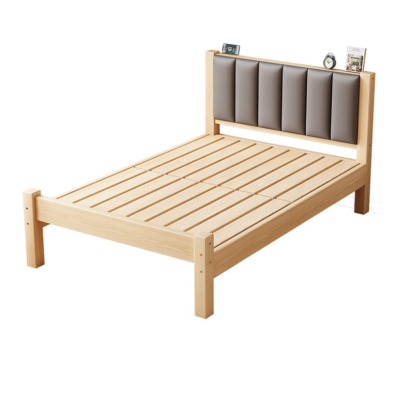 全实木床软包床家用卧室办公室松木1.5m双人床出租屋床1.2m单人床