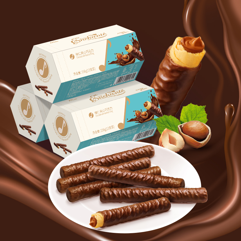 金帝珍爱榛仁巧克力棒156g盒装夹心牛奶威化蛋卷饼干休闲网红零食