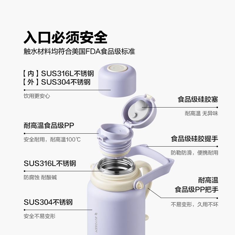 【新品上市】北鼎保温杯大容量保温保冰可爱水杯女泡茶外出便携杯