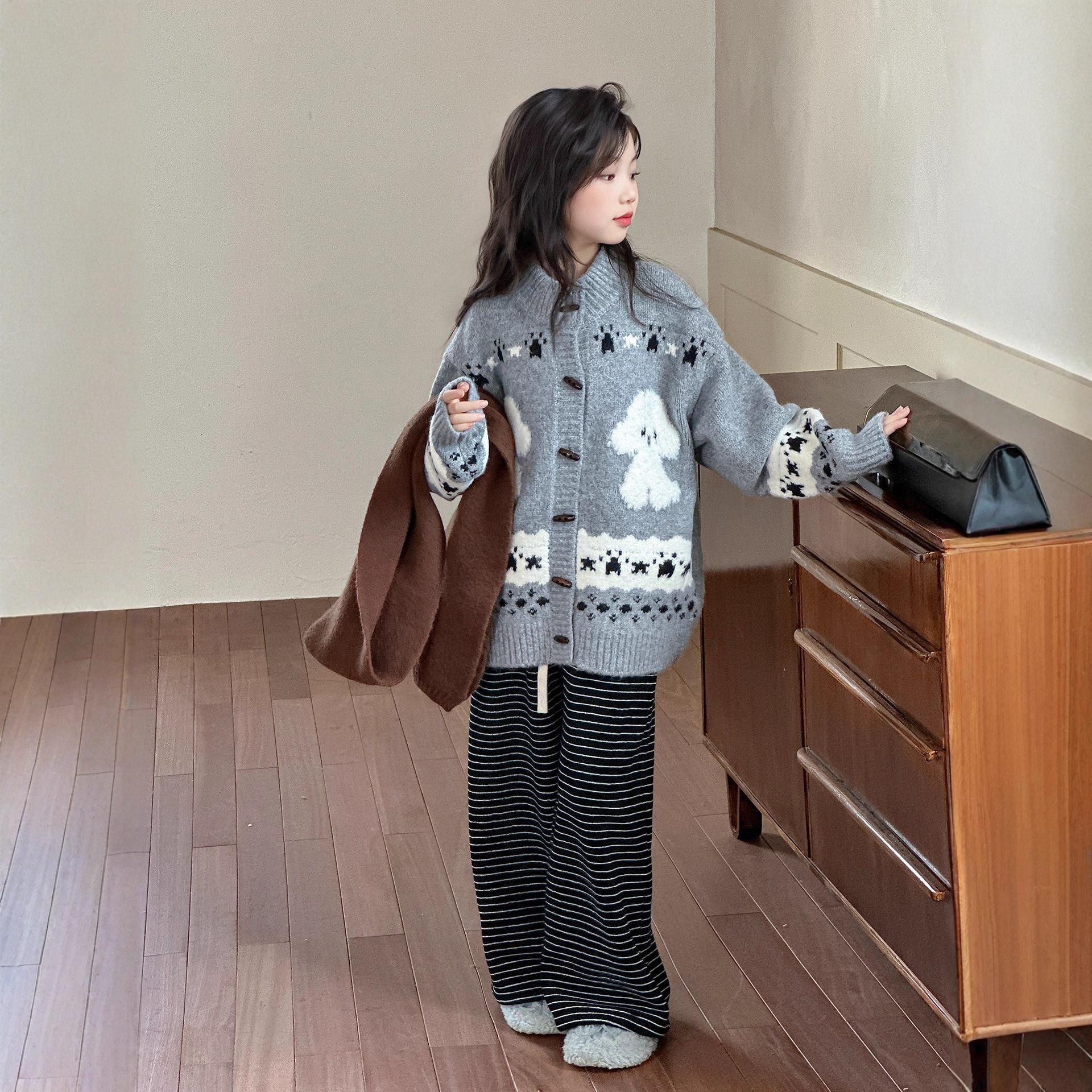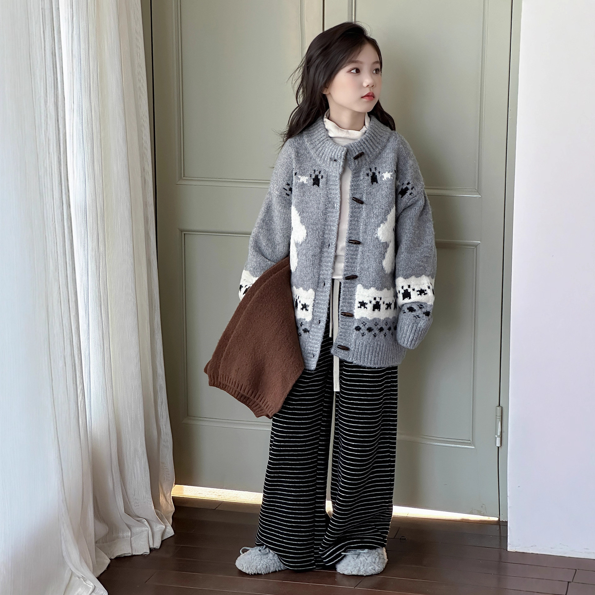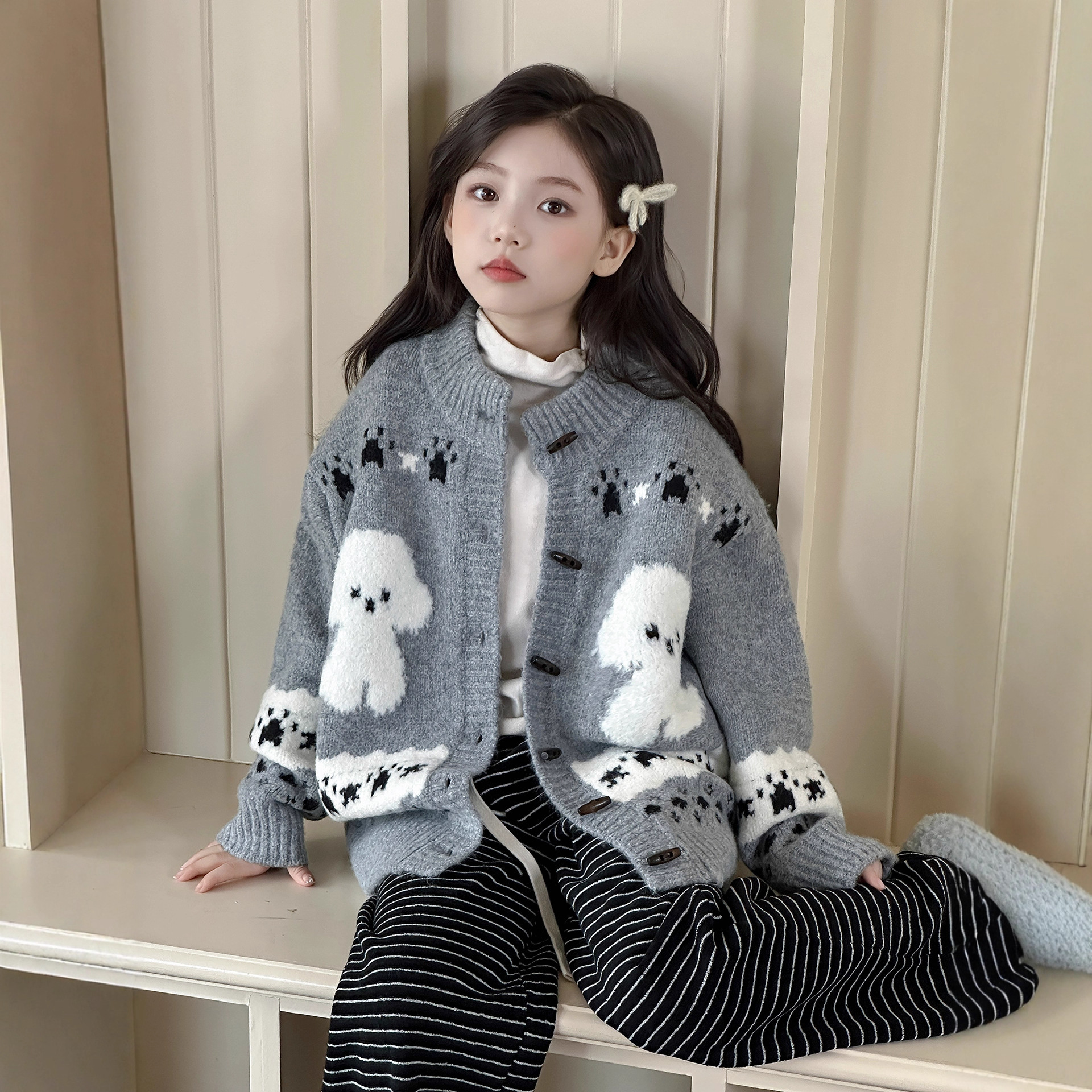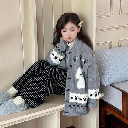 女童毛衣秋装2025秋冬新款韩版儿童针织衫女孩宽松加厚开衫外套