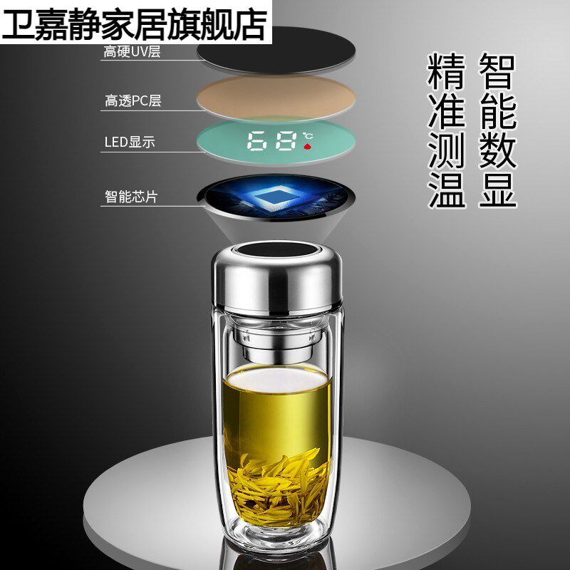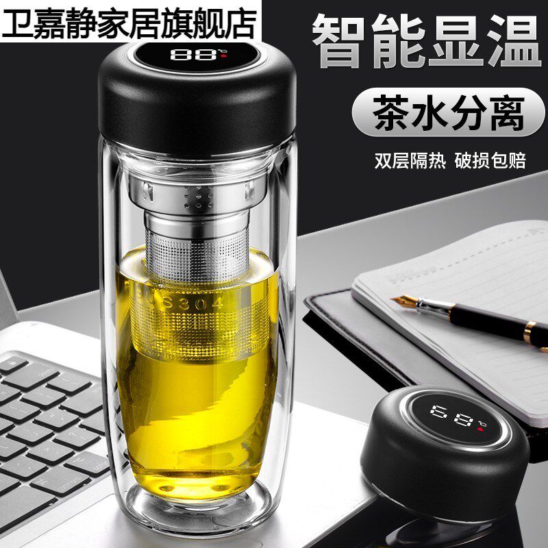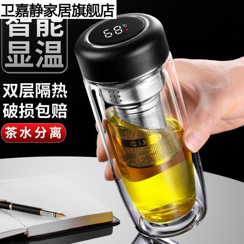 显温层玻璃杯男女办公泡茶杯子隔热防烫茶水分离水杯鹅蛋车载杯