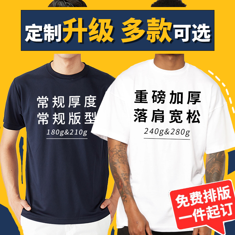 纯棉重磅水洗做旧t恤定制印logo短袖班服工作服大落肩五分袖衣服