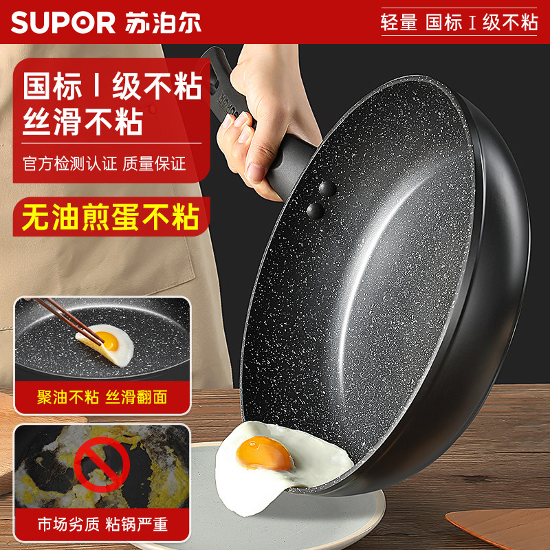 苏泊尔平底锅不粘锅家用麦饭石炒锅煎饼蛋锅牛排锅电磁炉不沾煎锅