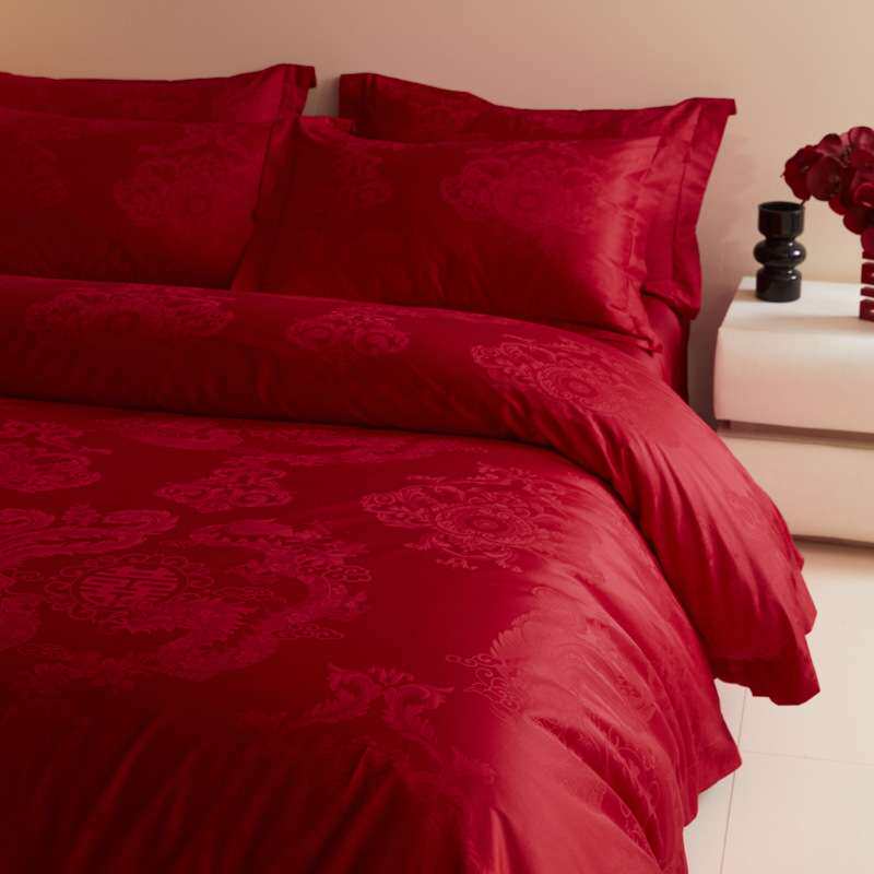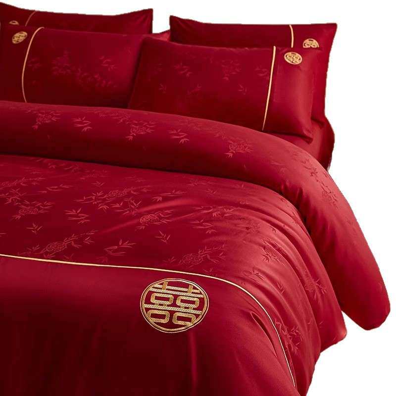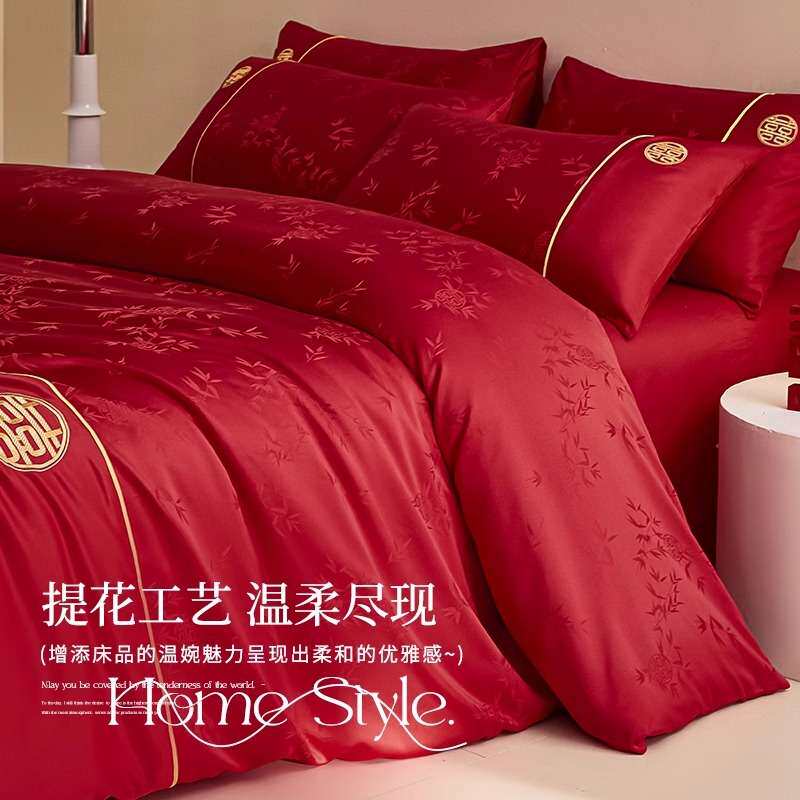 高档提花结婚床上四件套婚庆大红色婚床床品被套新婚用品喜被床单