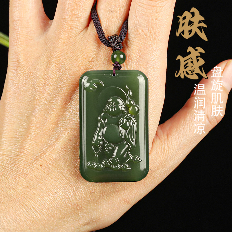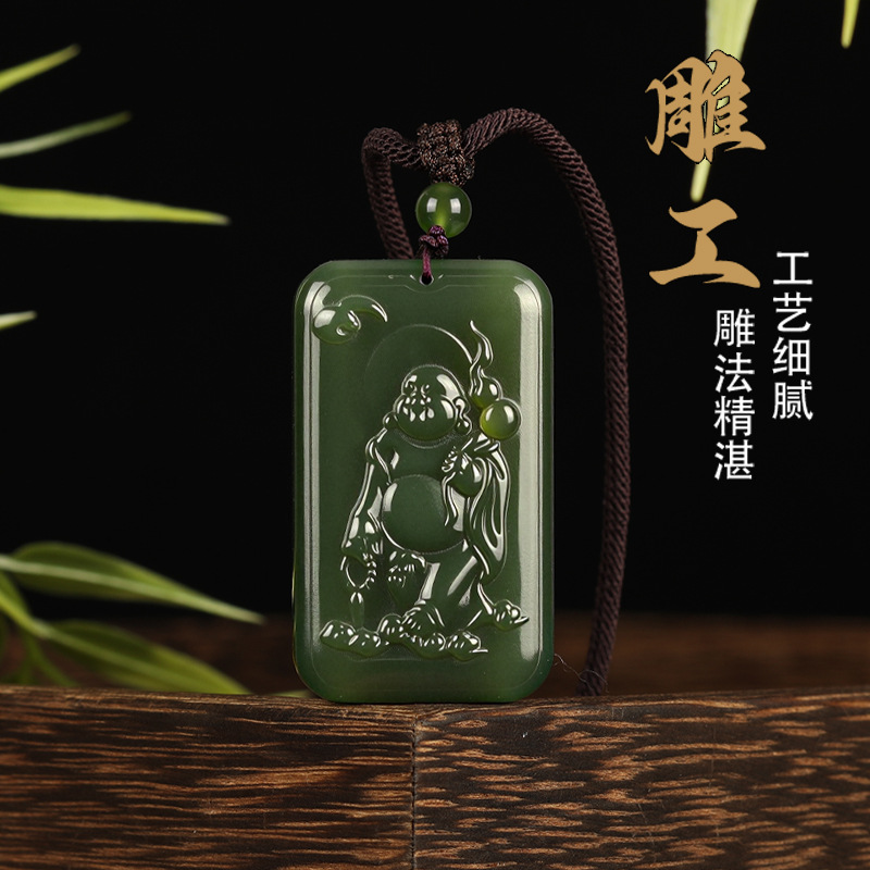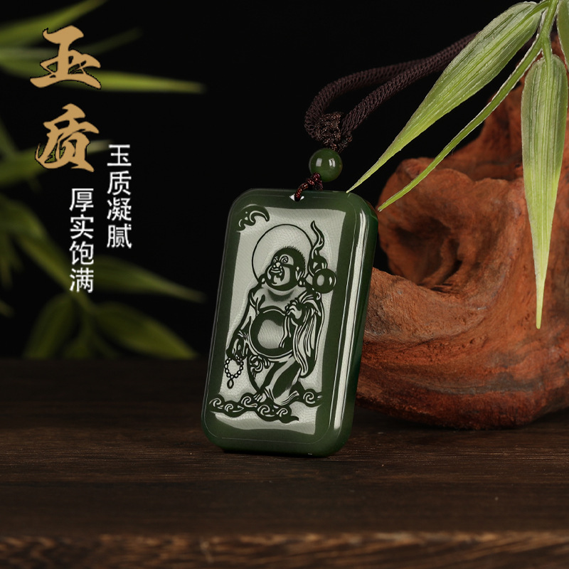 唐今玉天然新疆和田玉精致蝙蝠弥勒佛吉祥佛玉坠玉石项链吊坠男女