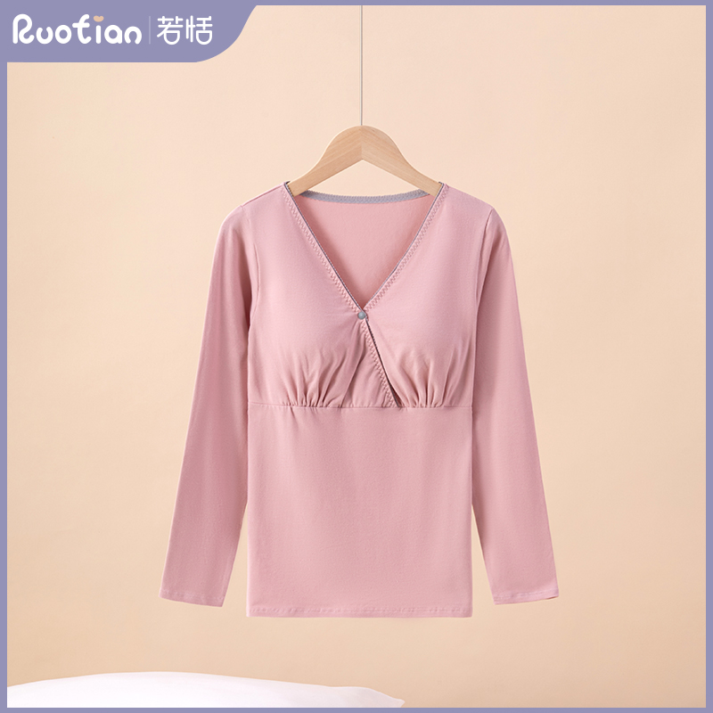 纯棉哺乳上衣产后喂奶衣打底衫月子服单件孕妇睡衣夏X季薄款春秋