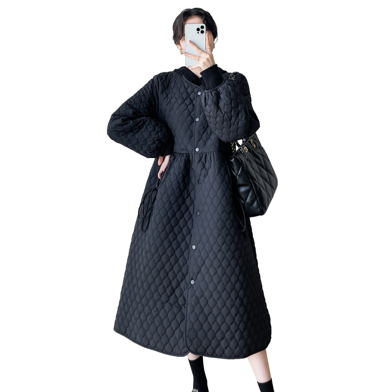 秋冬加大码女装胖mm显瘦藏肉减龄轻薄菱格棉服欧货长款棉衣裙外套