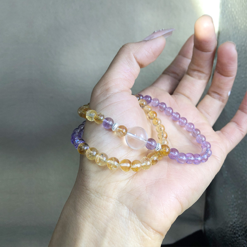 天然紫水晶手链设计款女东海塔上岸双圈多层招财多宝白黄水晶手串
