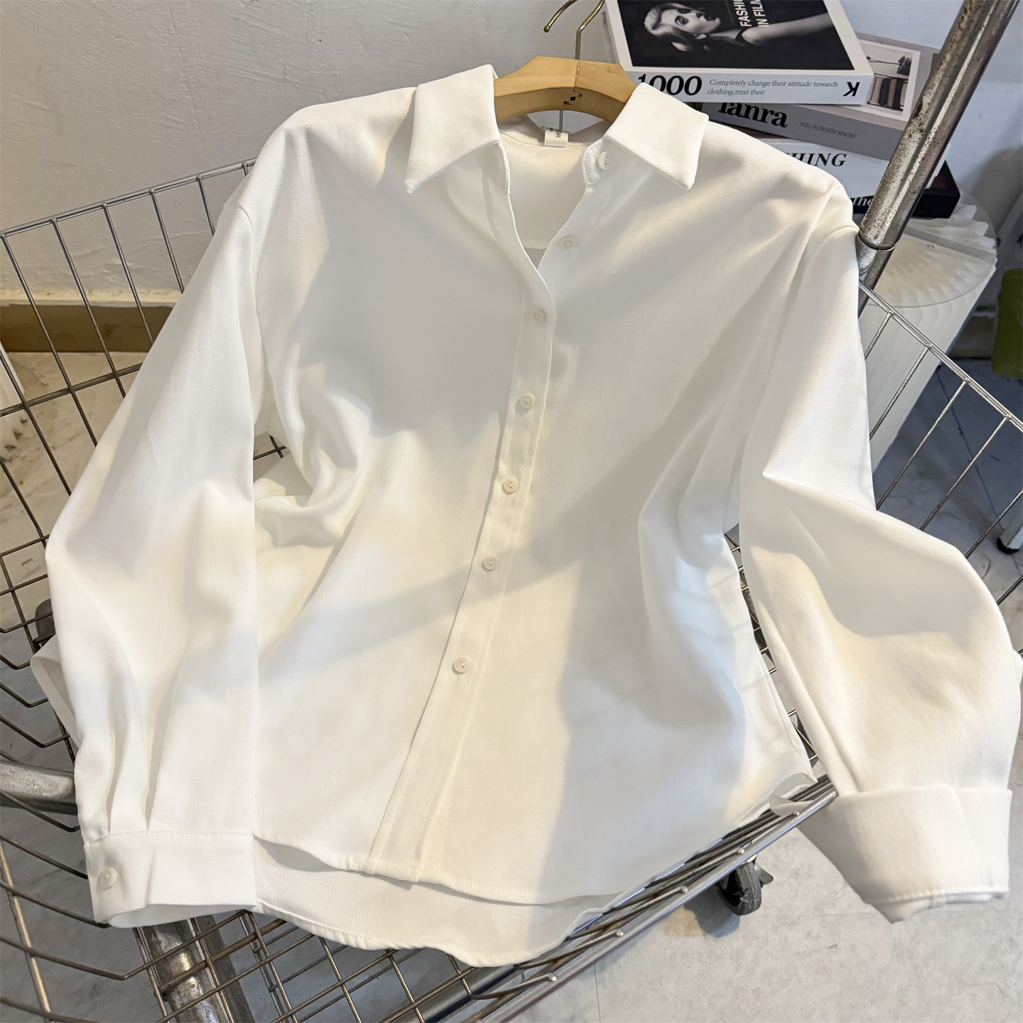 白色加厚磨毛衬衫女长袖2025秋冬季宽松休闲百搭叠穿衬衣职业通勤