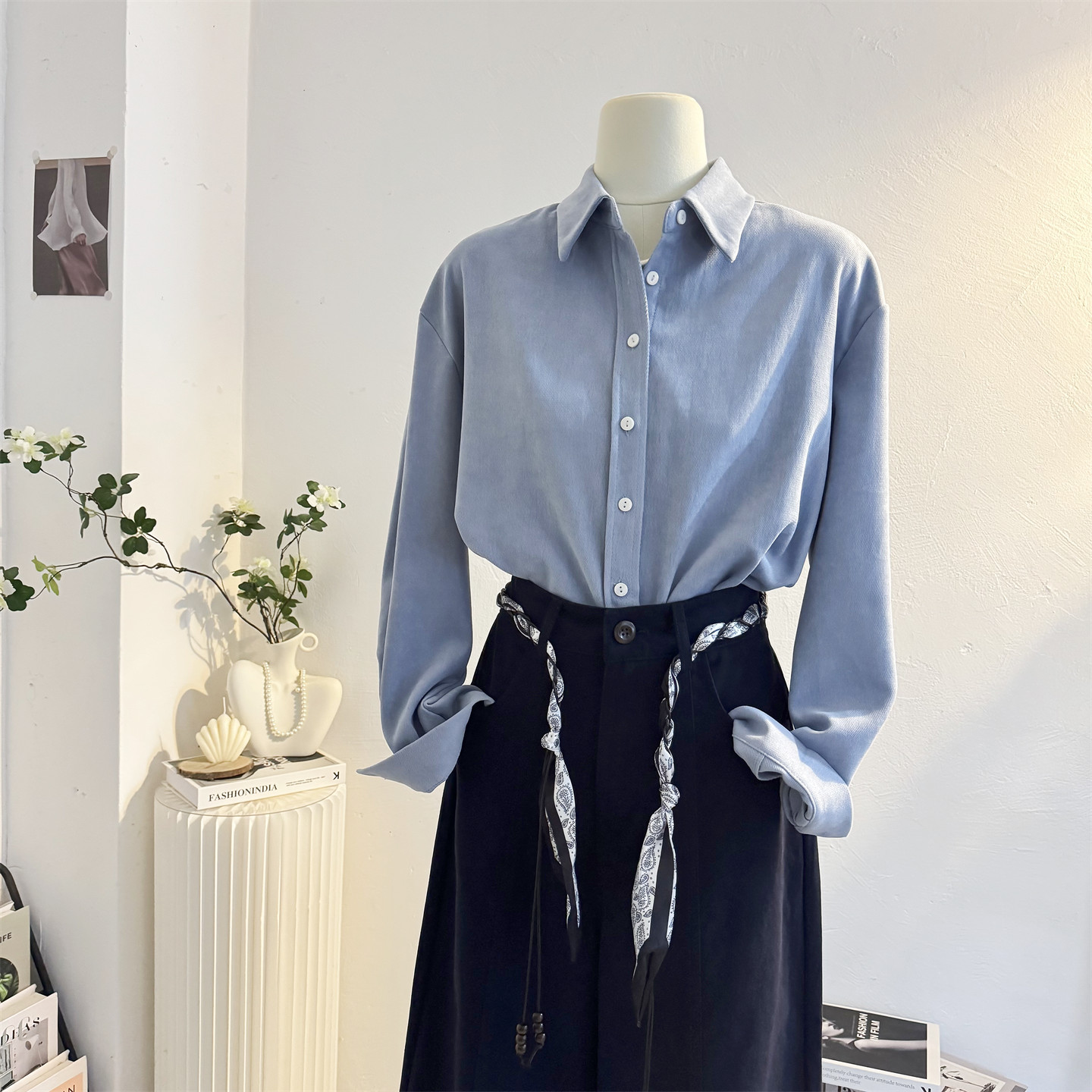 宽松休闲加厚磨毛叠穿长袖衬衫女