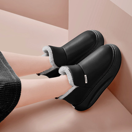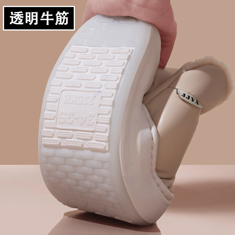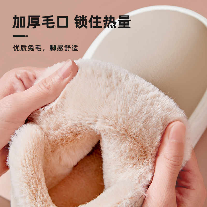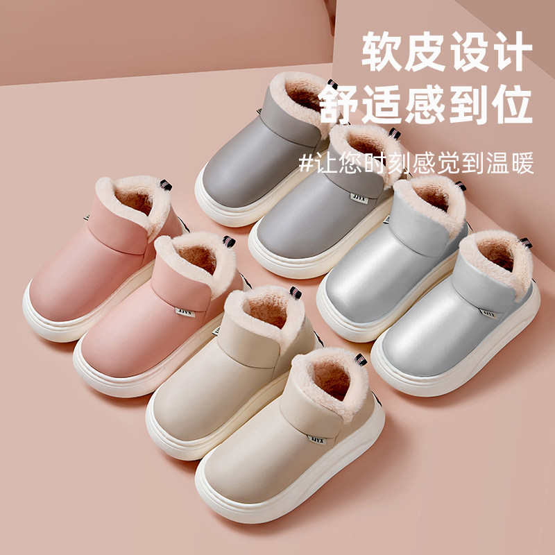踩屎感高帮棉拖鞋全包跟厚底冬季保暖外穿女休闲带后跟棉鞋皮面