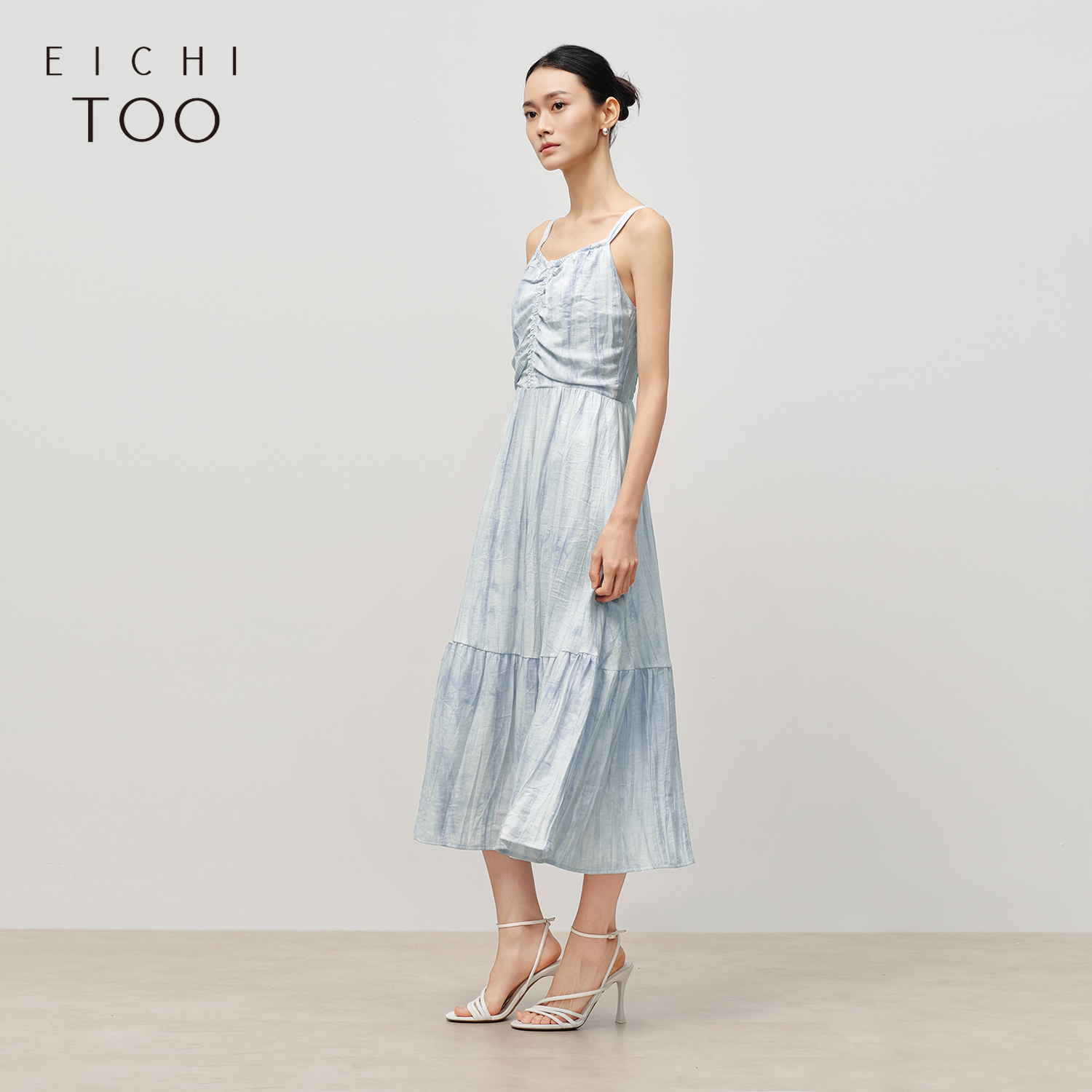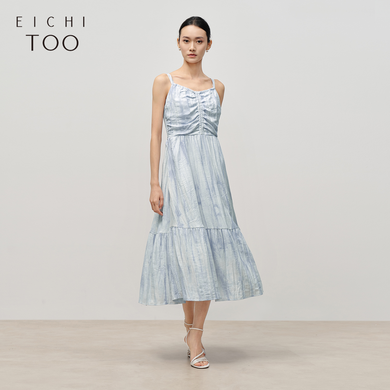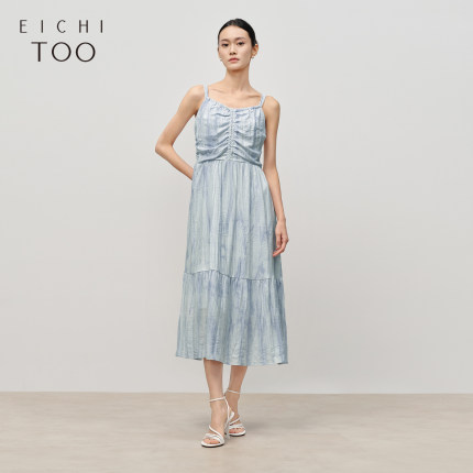 爱居兔含亚麻度假风吊带连衣裙2025年夏季新款优雅气质蓝色长裙