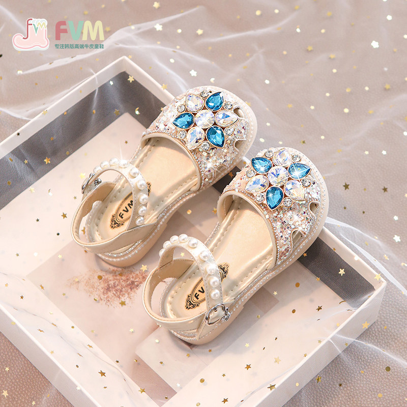 女童鞋子儿童公主小皮鞋2025春秋新款夏季夏款中大童女孩水晶软底