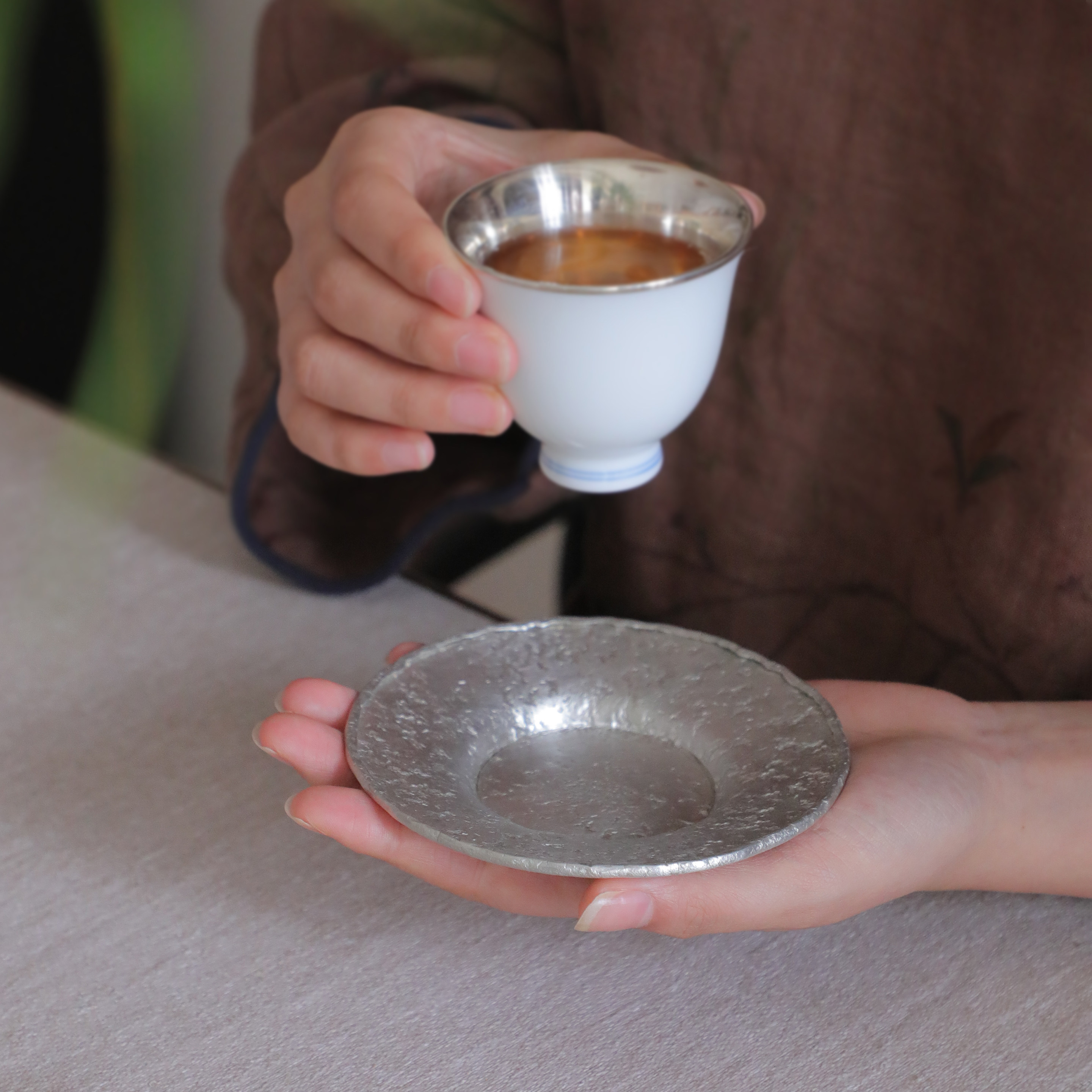 秦藏阁圆形纯锡杯垫杯托