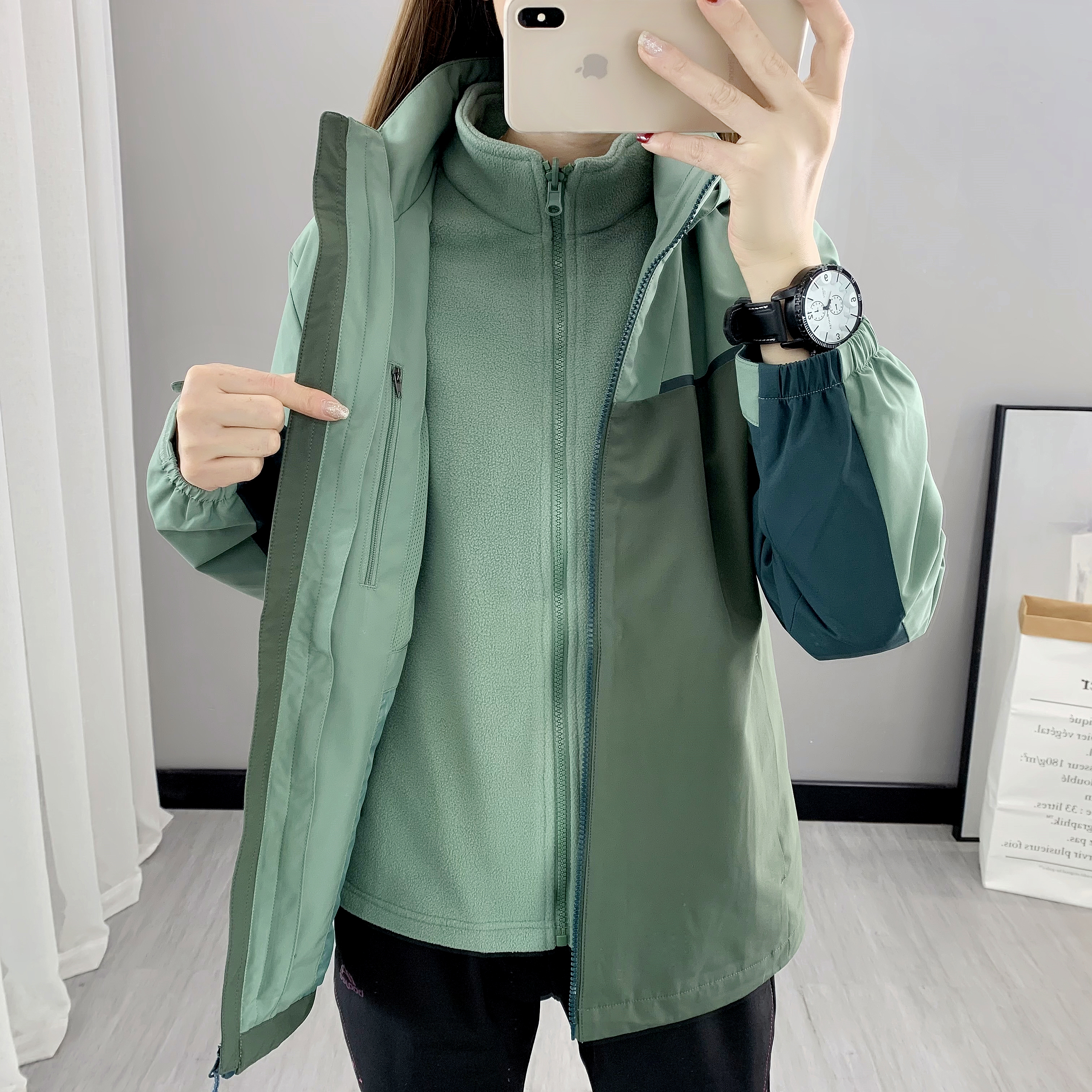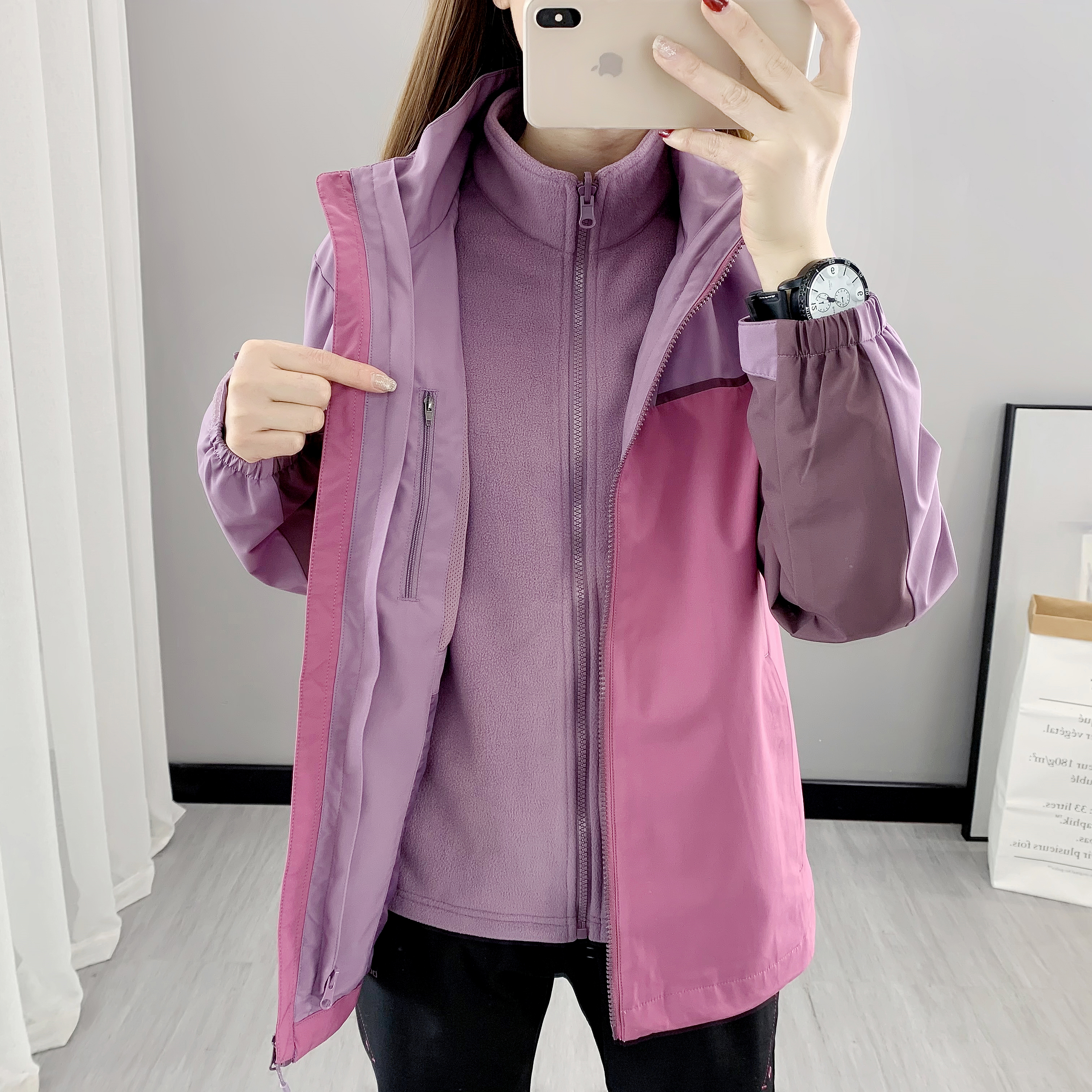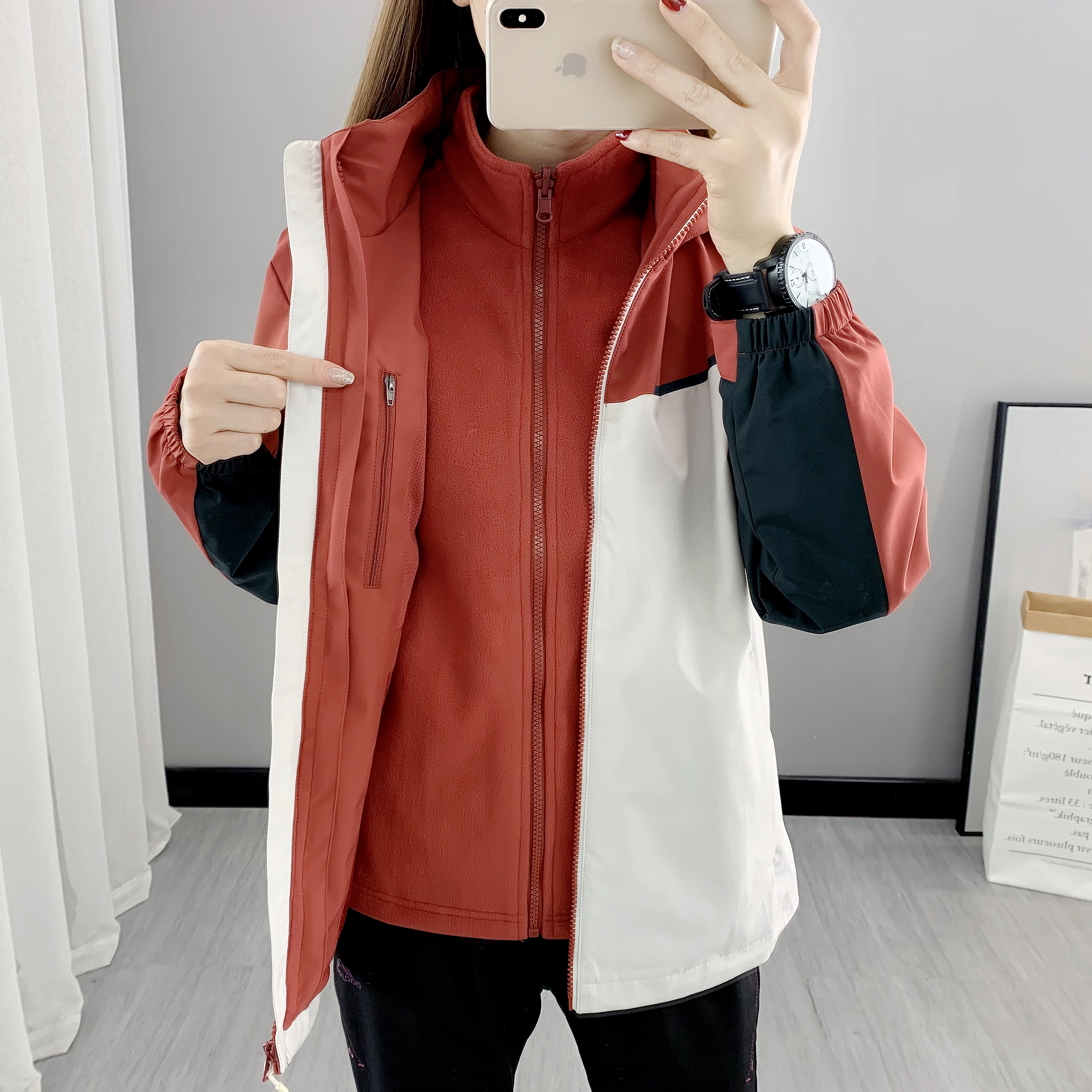 户外冲锋衣男女三合一秋冬防水透气可拆卸两件套韩版拼色登山外套