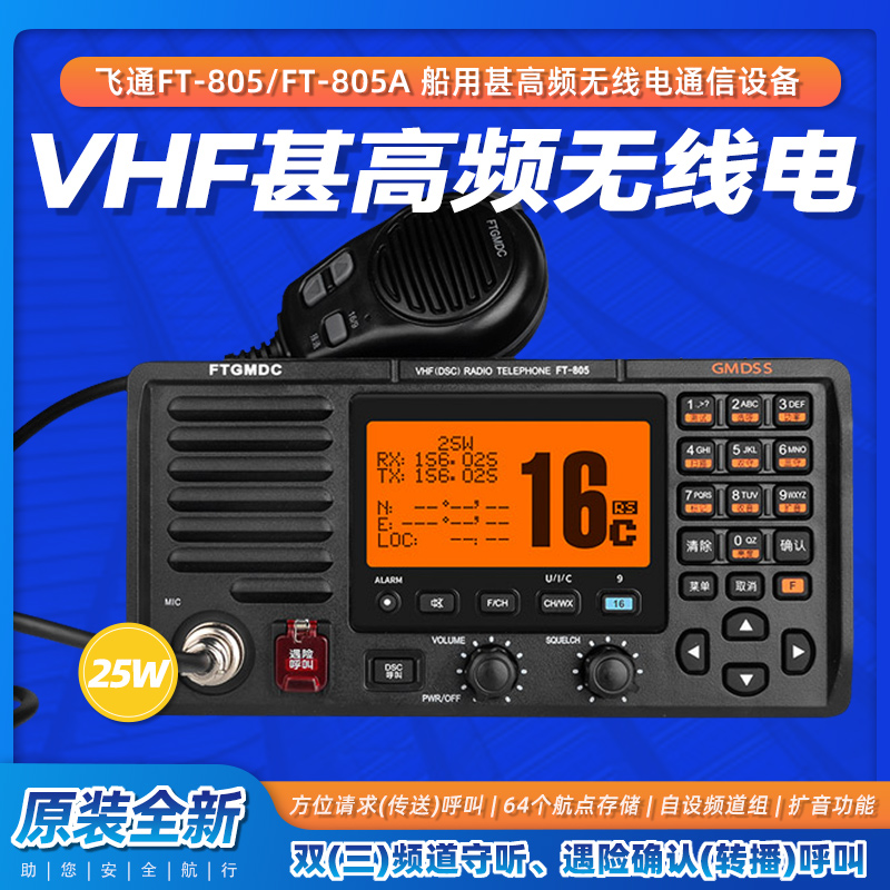 正品飞通甚高频电台FT-805/805A船用车载防水显示屏VHF户外对讲机