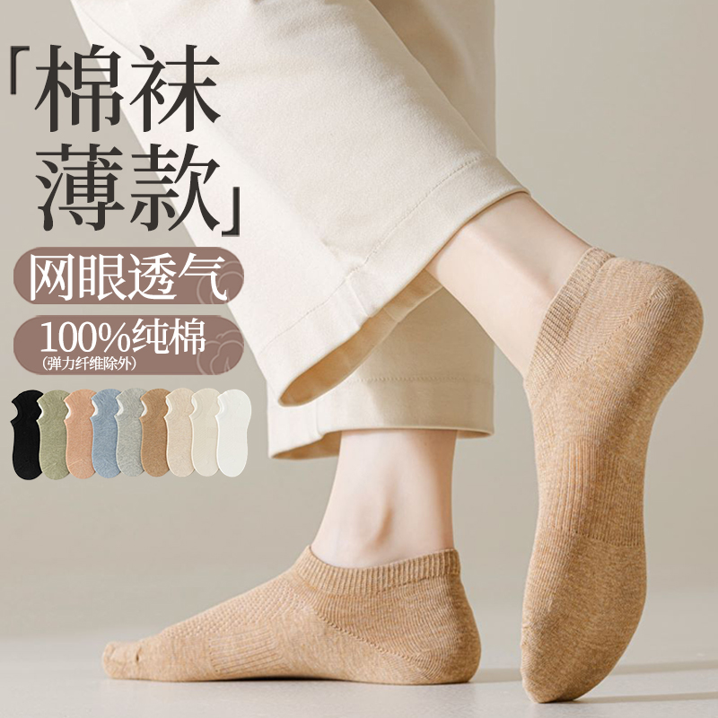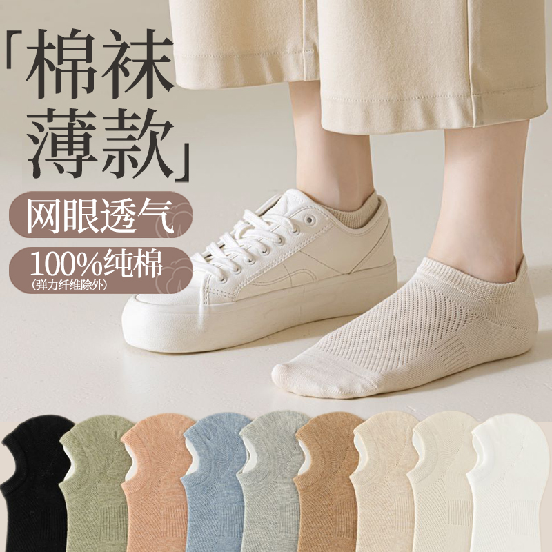 袜子女船袜夏季薄款纯棉不掉跟100%吸汗透气低帮浅口网筒短袜诸暨