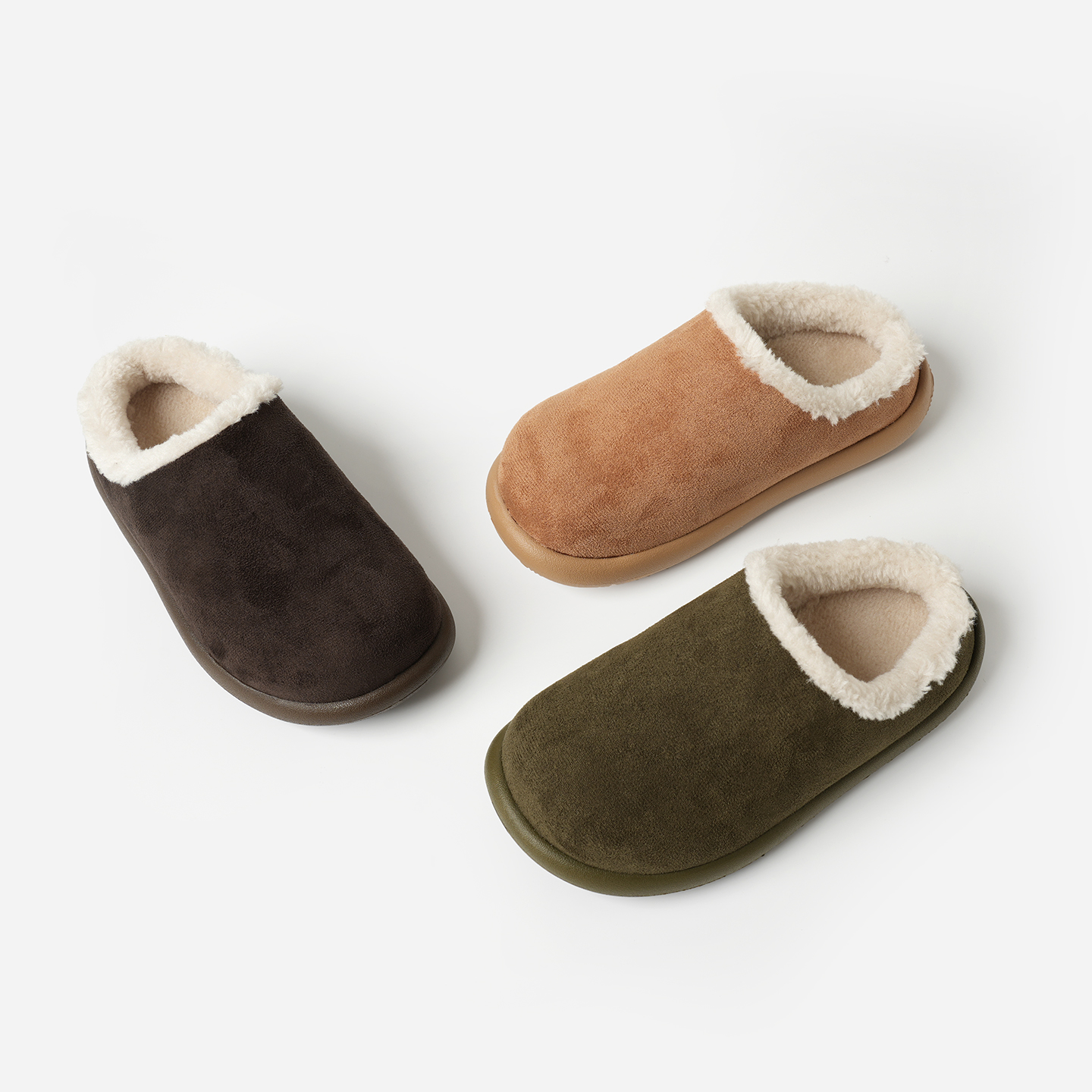 可亲子 儿童加绒棉拖鞋男童女童室内保暖鞋子 毛绒家居鞋 中大童