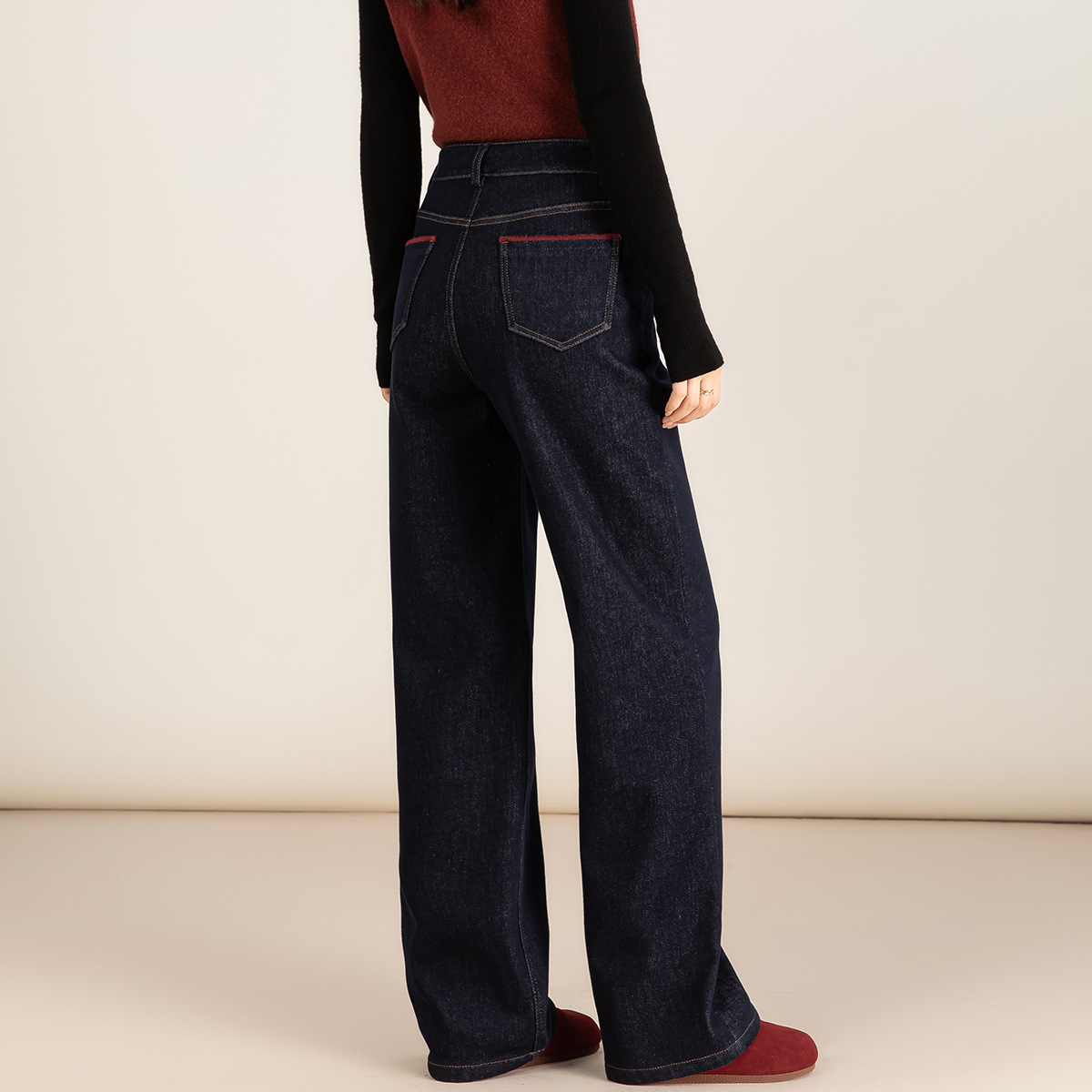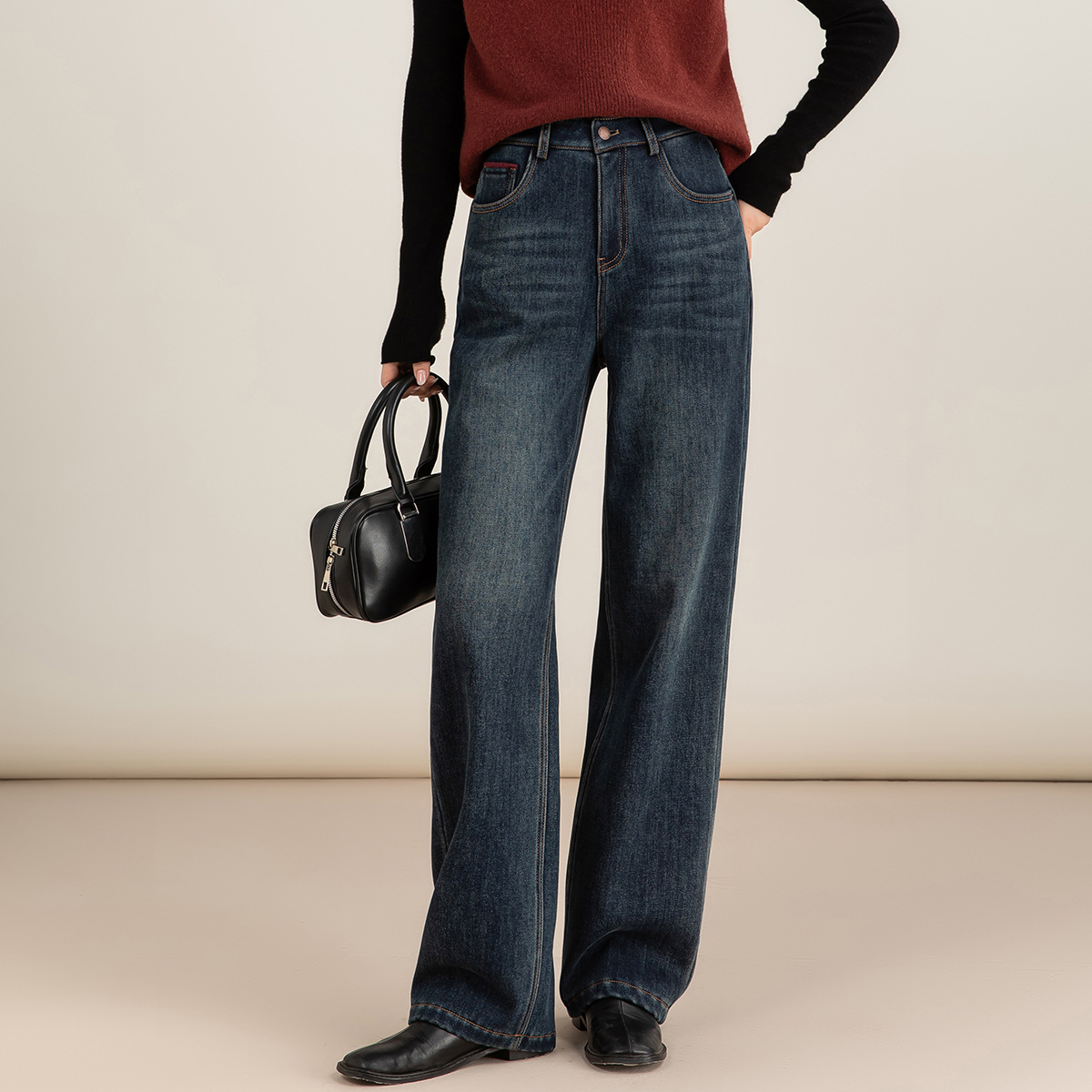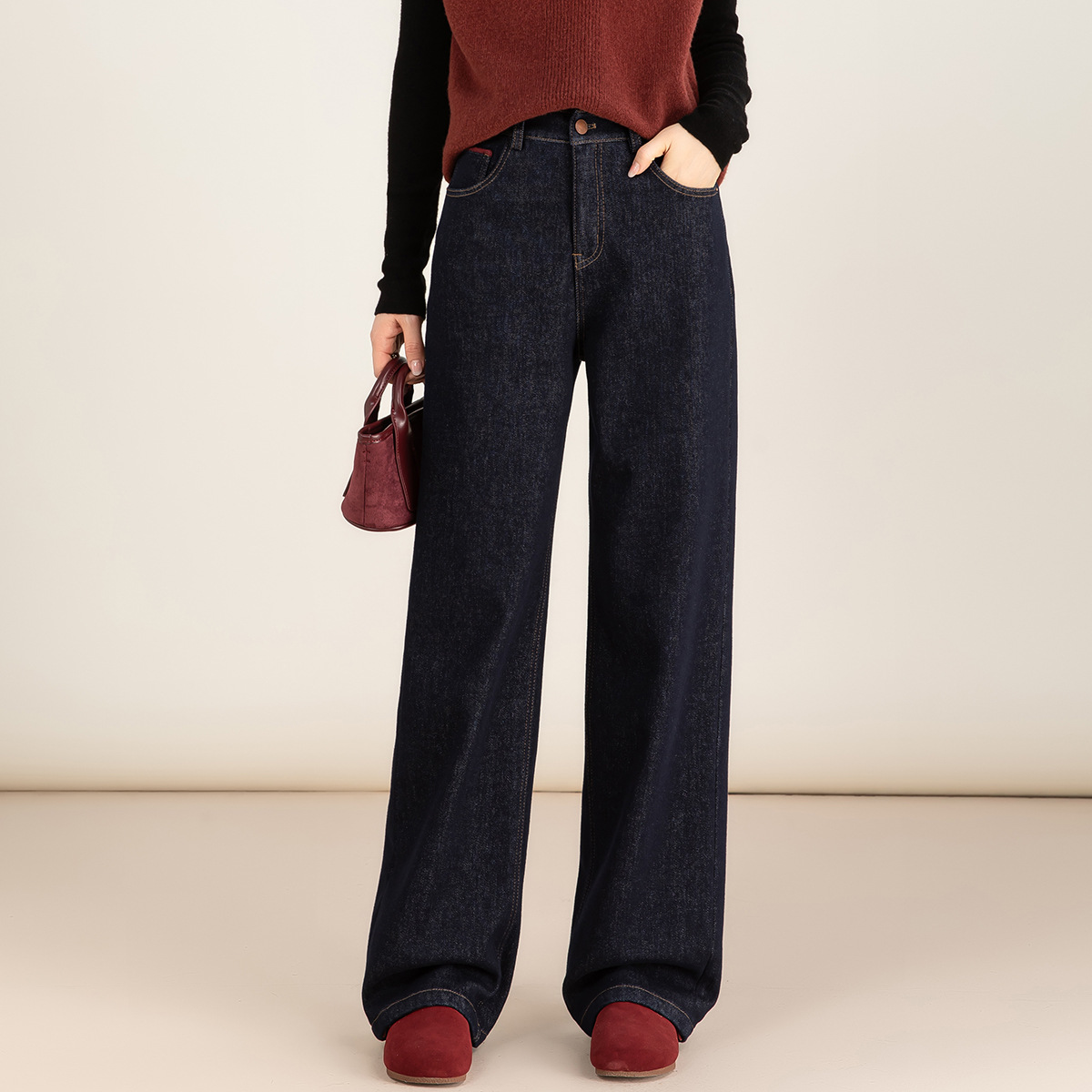 品牌2025冬季新款女士加绒加厚时尚垂感阔腿显瘦韩系牛仔百搭长裤