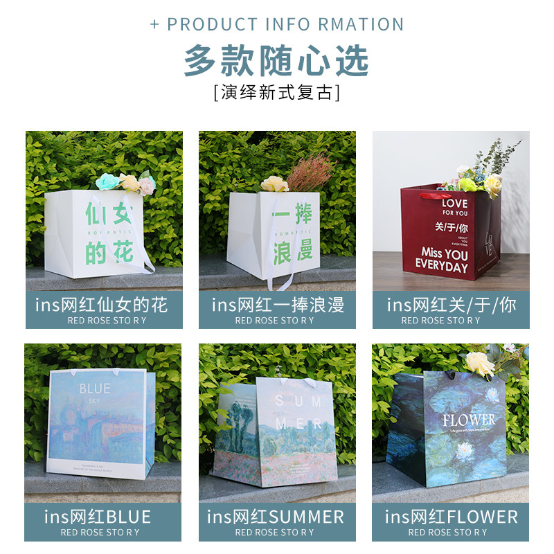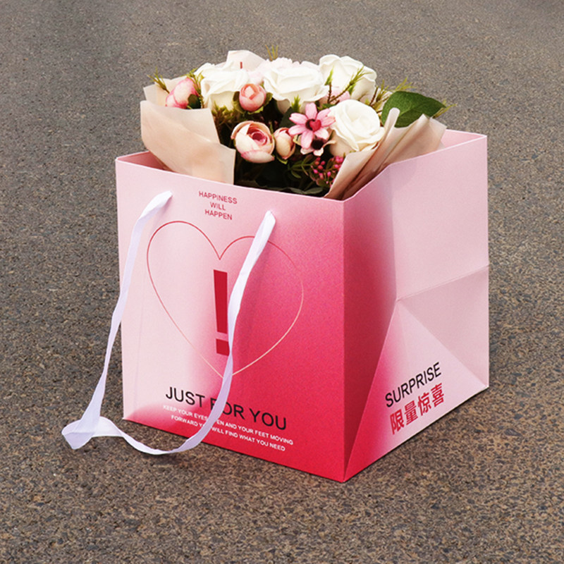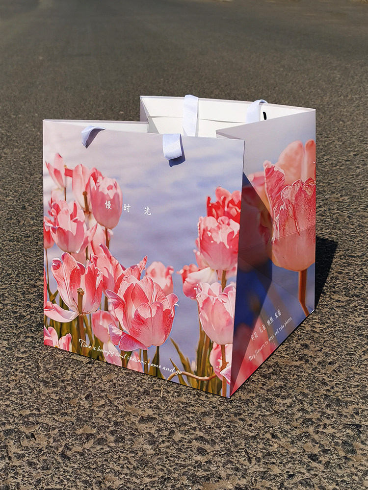 七夕鲜花手提袋花束包装礼盒网红方形情人节简约礼品袋大号定制
