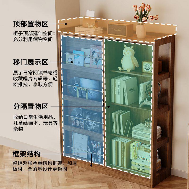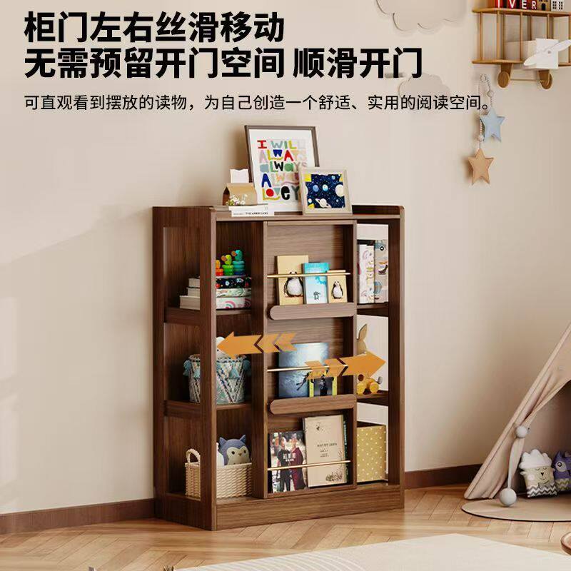 实木推拉门落地靠墙绘本架