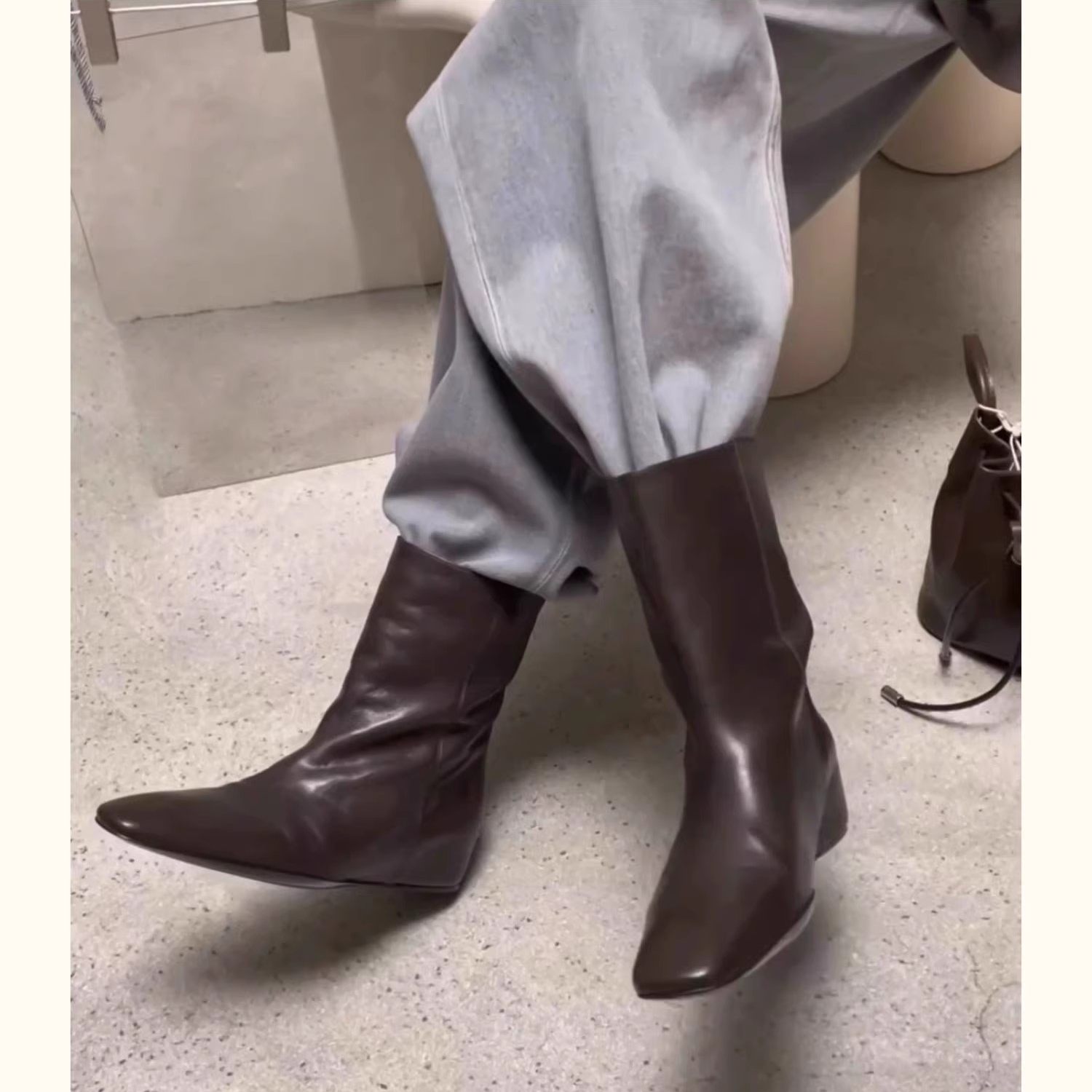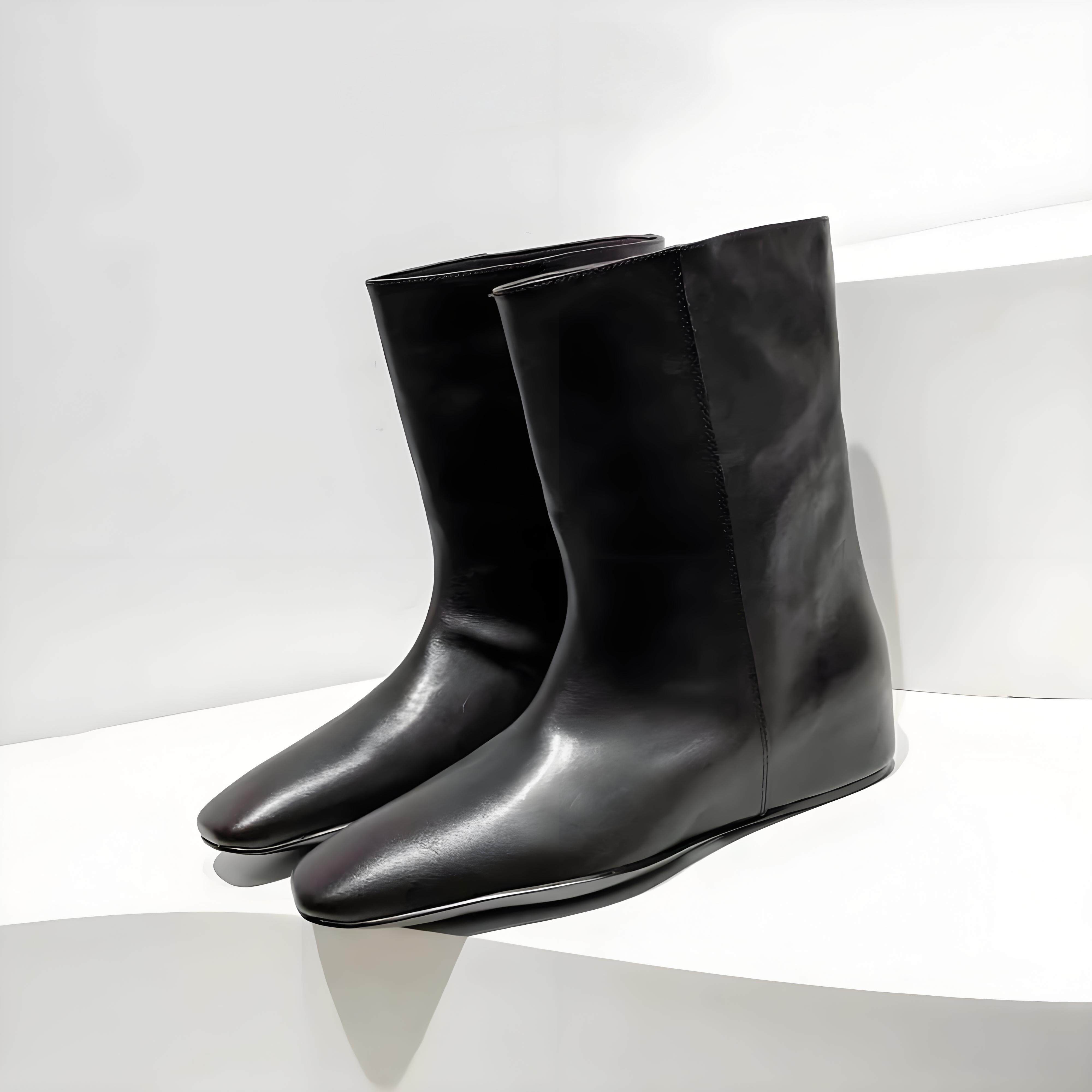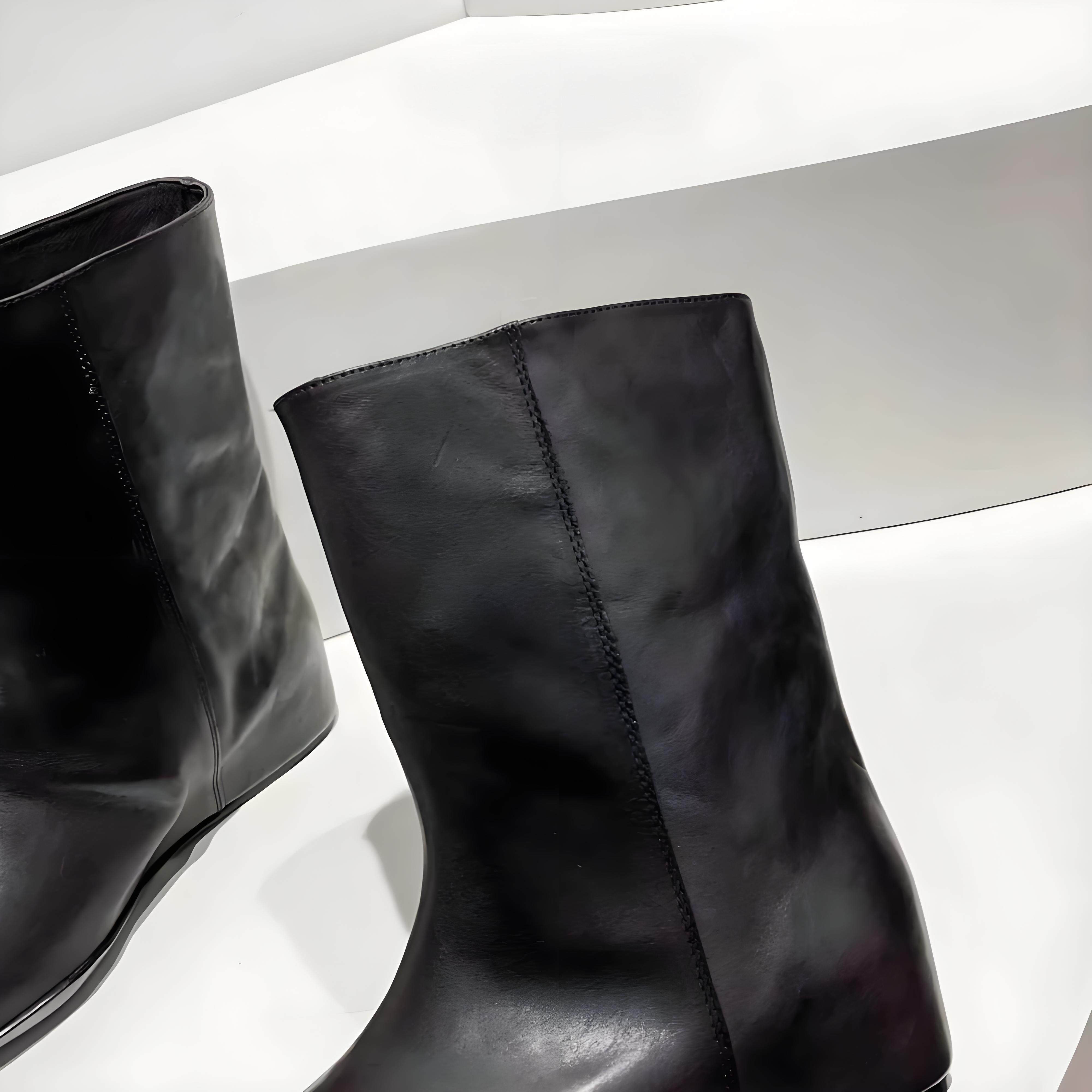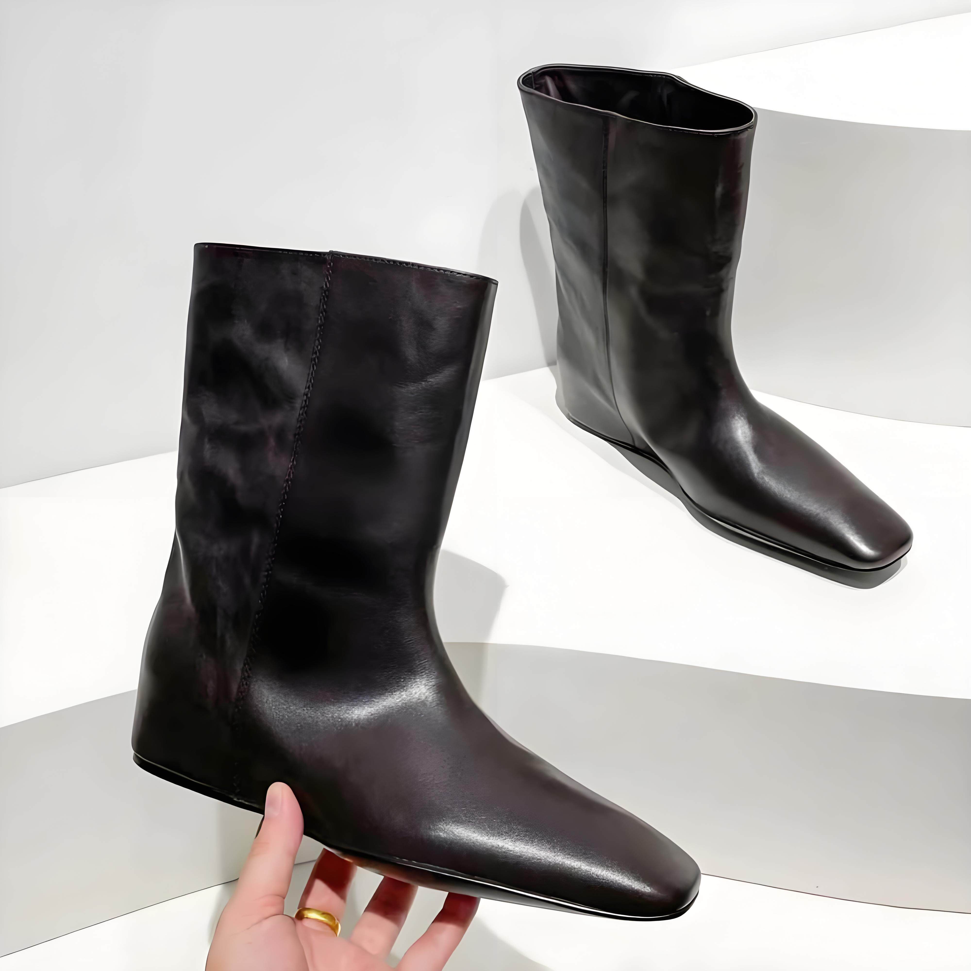头层牛皮 欧洲站女鞋冬新款方头内增高套筒短靴女复古单靴马丁靴